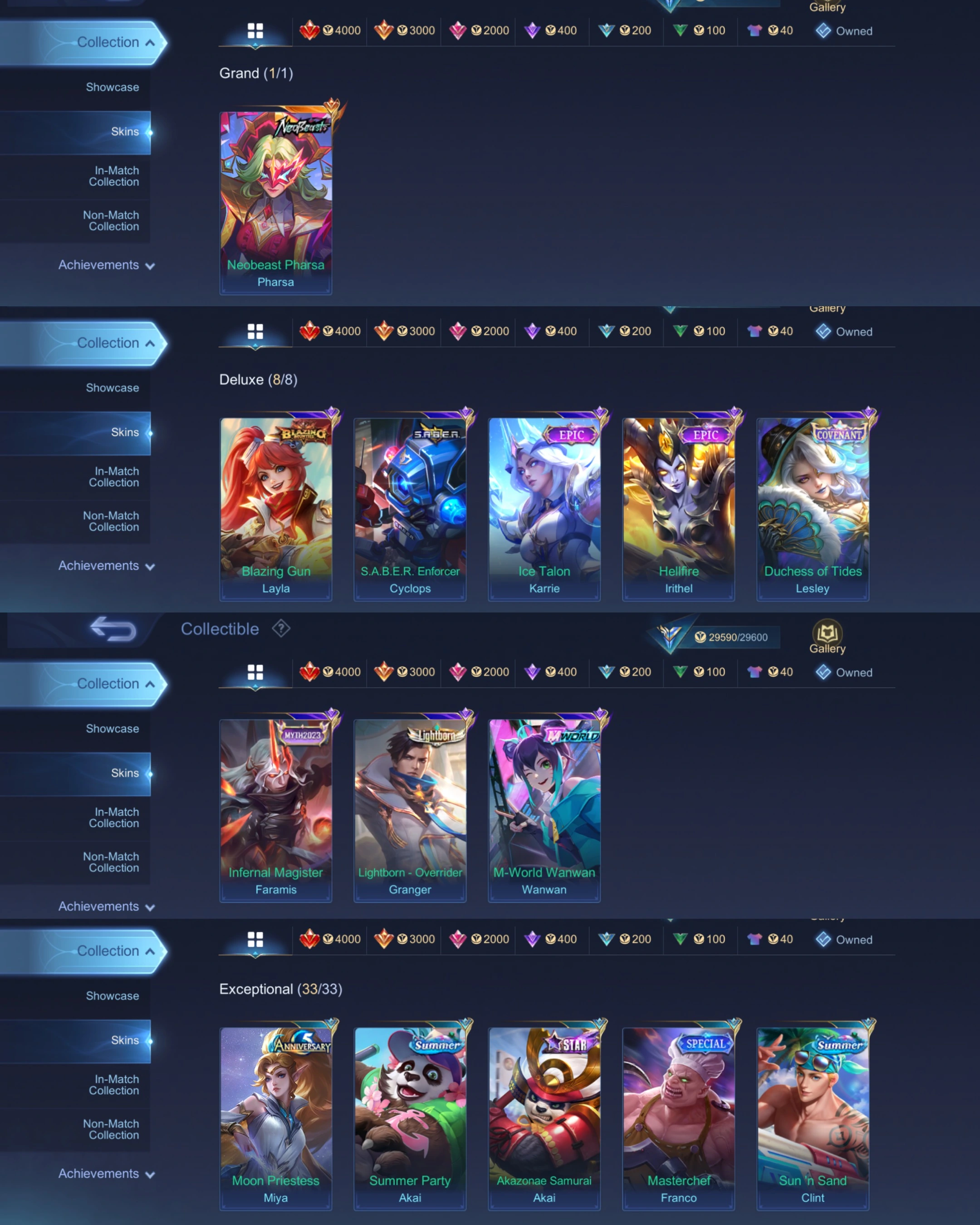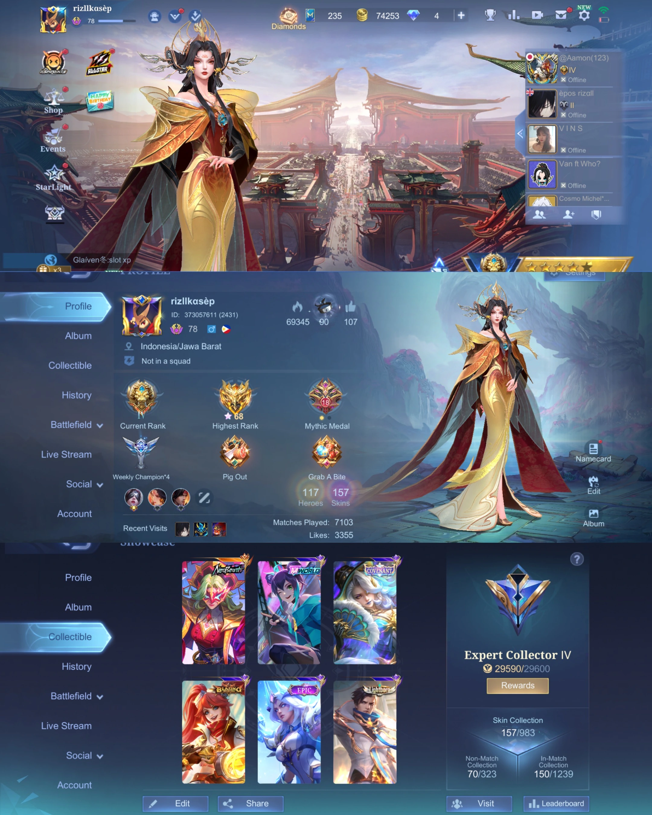 ML 364⚡FULL MAX EMBLEM⚡SKINS 157⚡HERO 117⚡NEOBEAST PHARSA⚡️BLAZING LAYLA ⚡️EPIC KARRIE IRITHEL⚡️COVENANT LESLEY⚡️MYTHS FARAMIS⚡️LIGHTBORN GRANGER⚡️MWORLD WANWAN⚡️