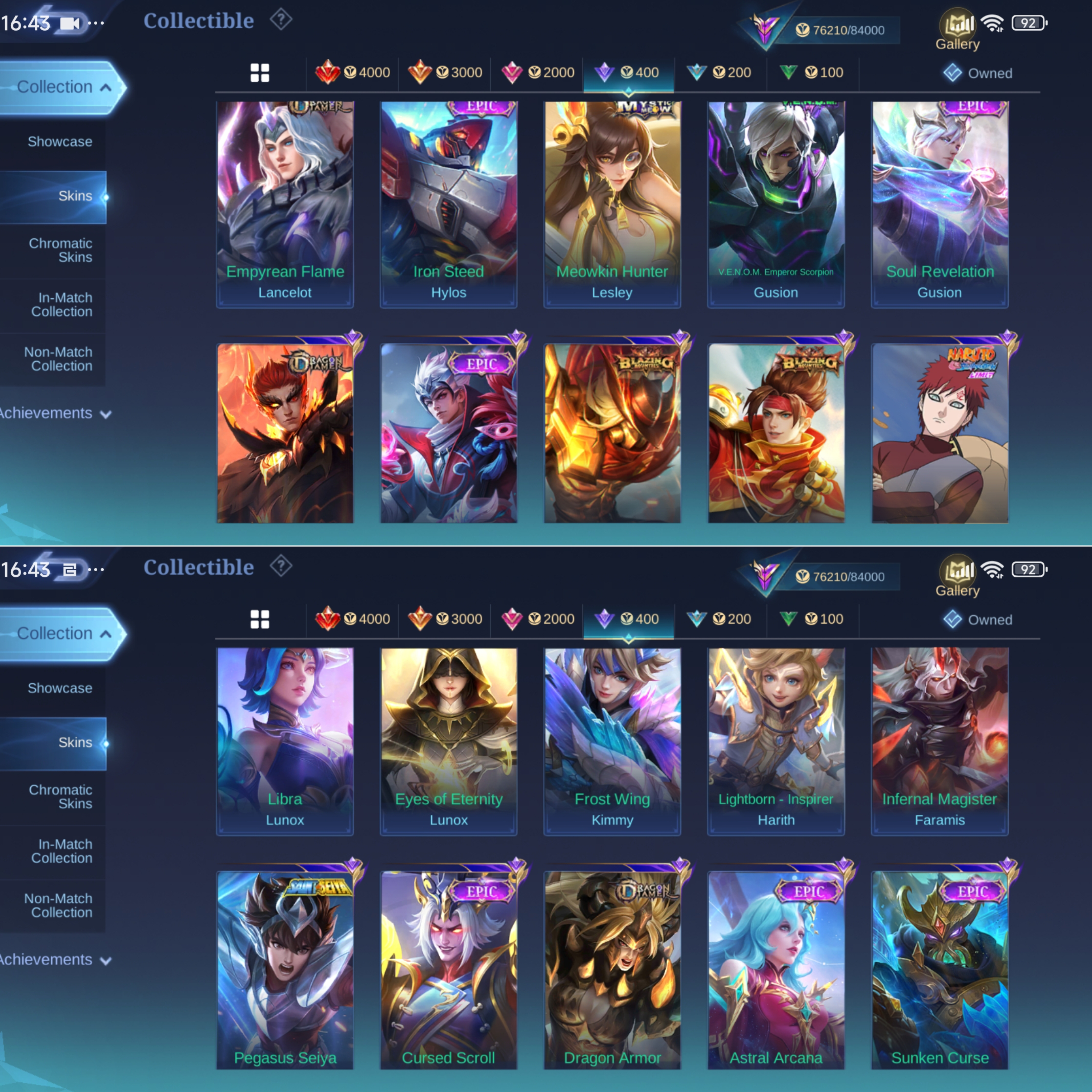 ML-827 Skins 276 [ Magic Core 53 ] Saint Seiya Chou / Sanrio Change x Floryn / Annual Hayabusa / Zodiac Lancelot x Zodiac Hilda