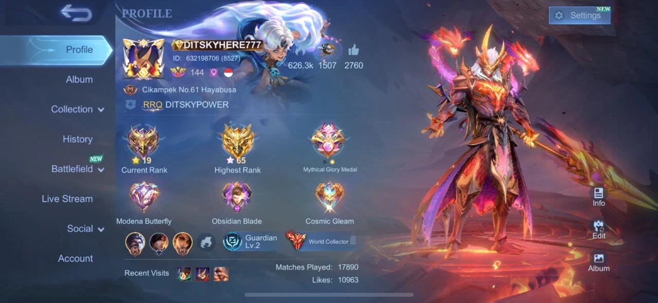Super Cheap World Colectors 699 Skins🔥Change Name Available🔥9 Legeends🔥Harith Hxh🔥Lance Dawning🔥Full KOF V1🔥Full The Aspirant🔥Exo Haya🔥Moskov Allastars🔥Granger Megatron🔥8 Colector🔥64% Winrate🔥Acces Full🔥Cheapest and Safe Accountt
