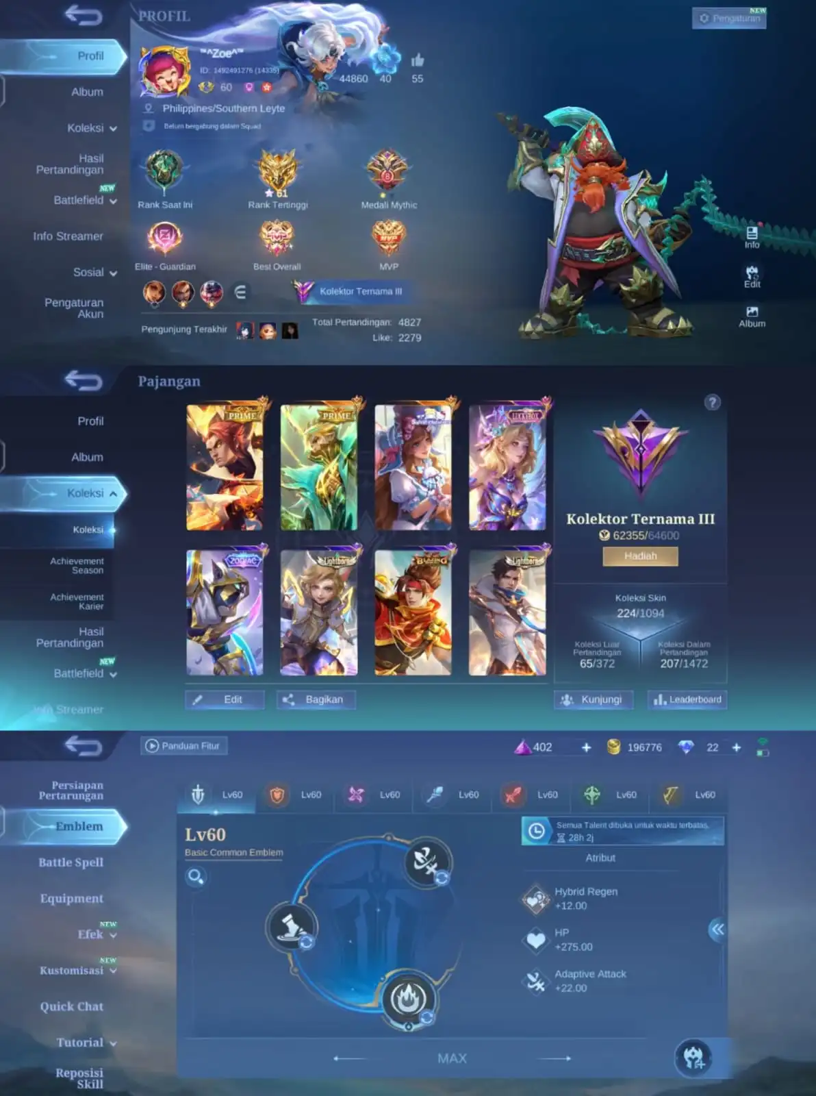 T110🔥2 VERY LIMIT RECAL EFFECT⚡EMBLEM ALL MAX🍀2 PRIME🍀8 EPIC🍀3 LIGHTBORN🍀RANK: EPIC🍀HERO 107🍀SKIN 224🍀SAFE ACCOUNT)