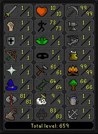 Regular Ironman Skiller ⸱ 99 Firemaking w/ 99 Mining|73 Agility|83 Hunter|81 Runecrafting + Pyromancer Outfit ez3415