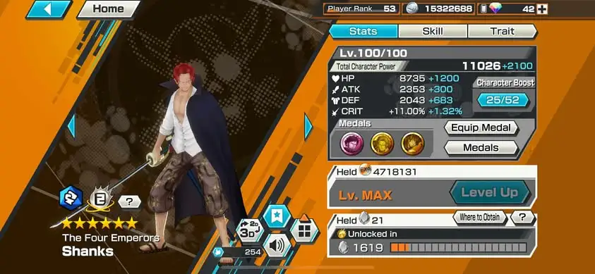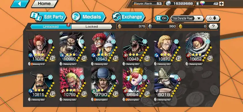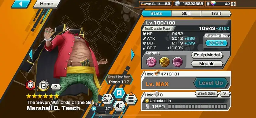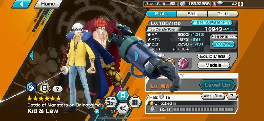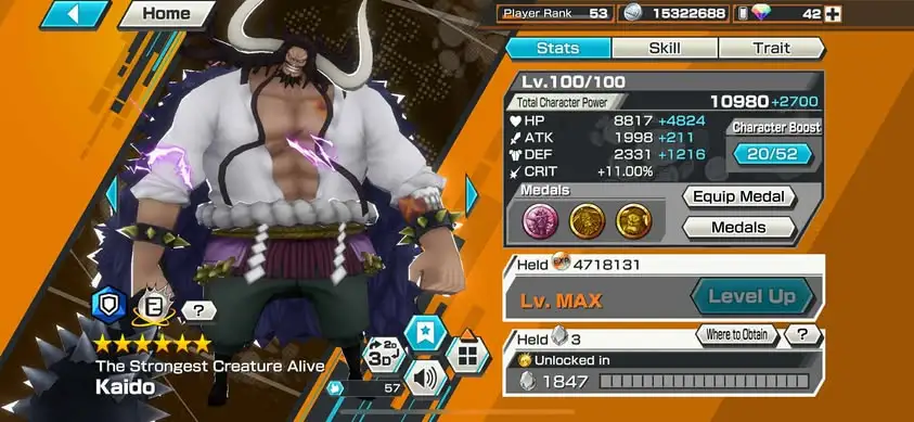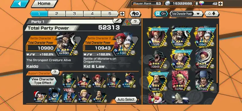 [3309][IOS+ANDROID] 5 EX / 4 MAX / Kaido + Kid Law + Shanks + Kuzan + Blackbeard, Support 162%, Good Medal