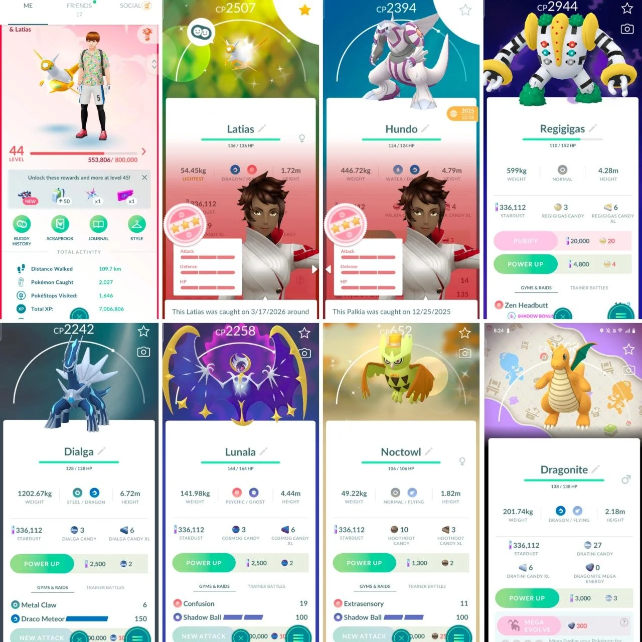 LEVEL 44⚡SHUNDO LATIAS⚡HUNDO PALKIA⚡DIALGA⚡32 LEGENDRY⚡29 SHINY⚡LUNALA⚡ DRAGONITE BG⚡SHINY GENESECT⚡ NAME CHANGE AVAILABLE ⚡ INSTANT DELIVERY 🚚