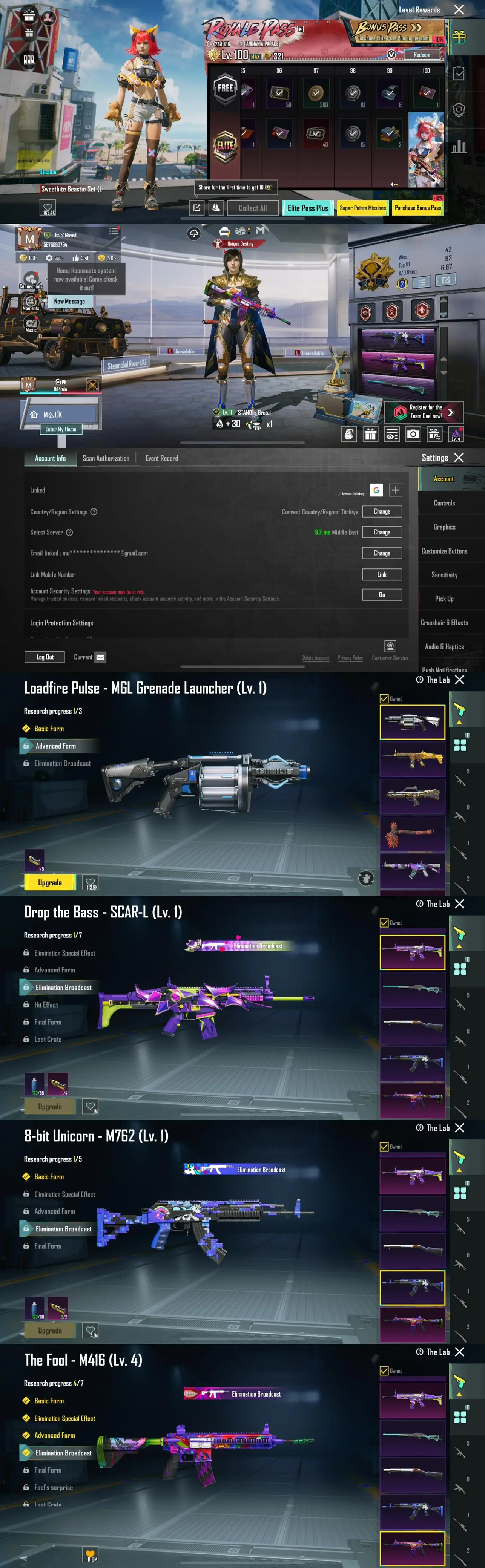 Level 71 🔹 43 Mythic Outfits 🔹 Killing Machine Set 🔹 TDM Outfits 🔹 10 Gun Labs 🔹 M416 Fool L4 🔹 SCAR-L Fool L1 🔹 3 Gunslots 🔹 Instant Delivery 🔹 X223