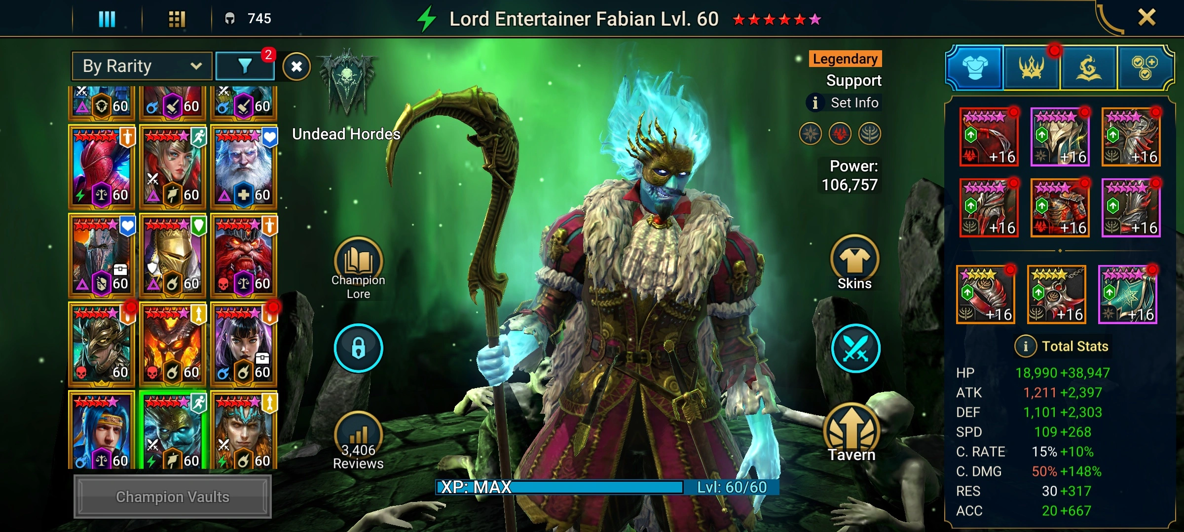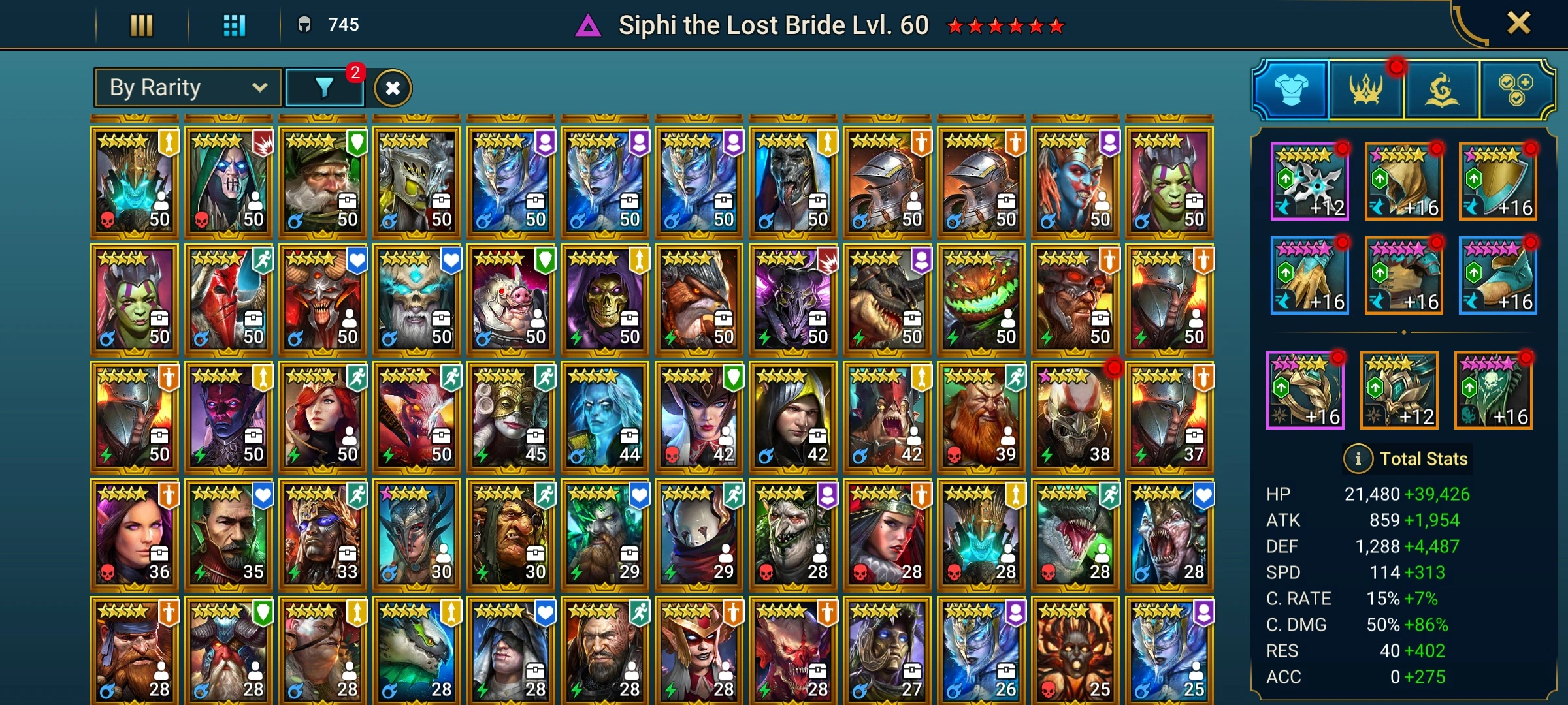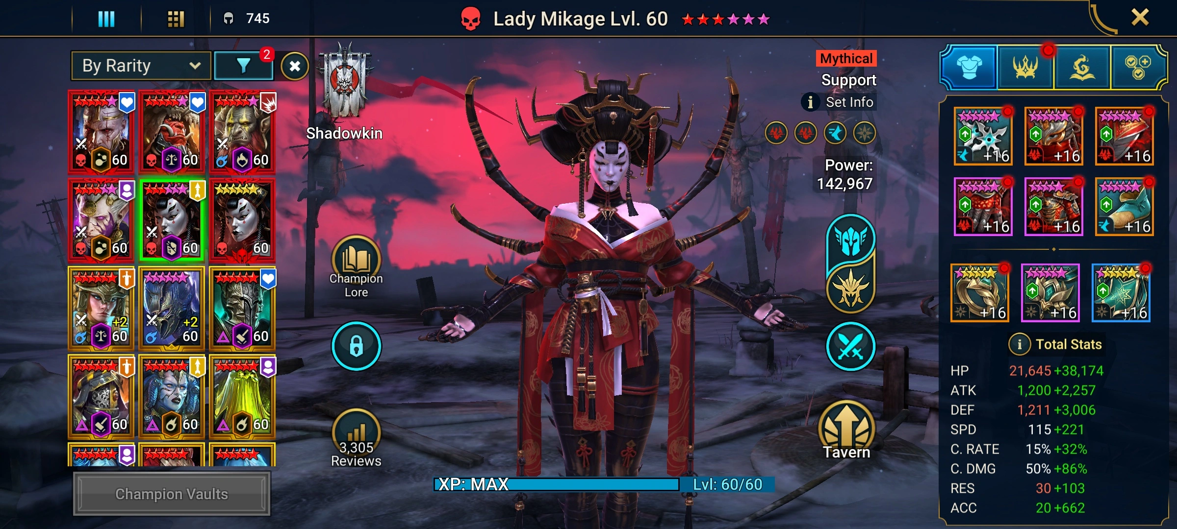 [6 Mythical Champions][19.03M] Lady Mikage x2,Galathir,Ashnar(5*),Gizmak(5*),Embrys(5*) + 188 LEGENDARY (Marius,Siphi(6*) 427+Rotos(6*)/x2,Titus(6*),Mith(6*),Ven+Cup(6*),Odin,Niamhe,Graazur,Lamasu,Trunda+2(6*)...) + 1k UNM + 1k NM HYDRA + 1k UNM Chimera