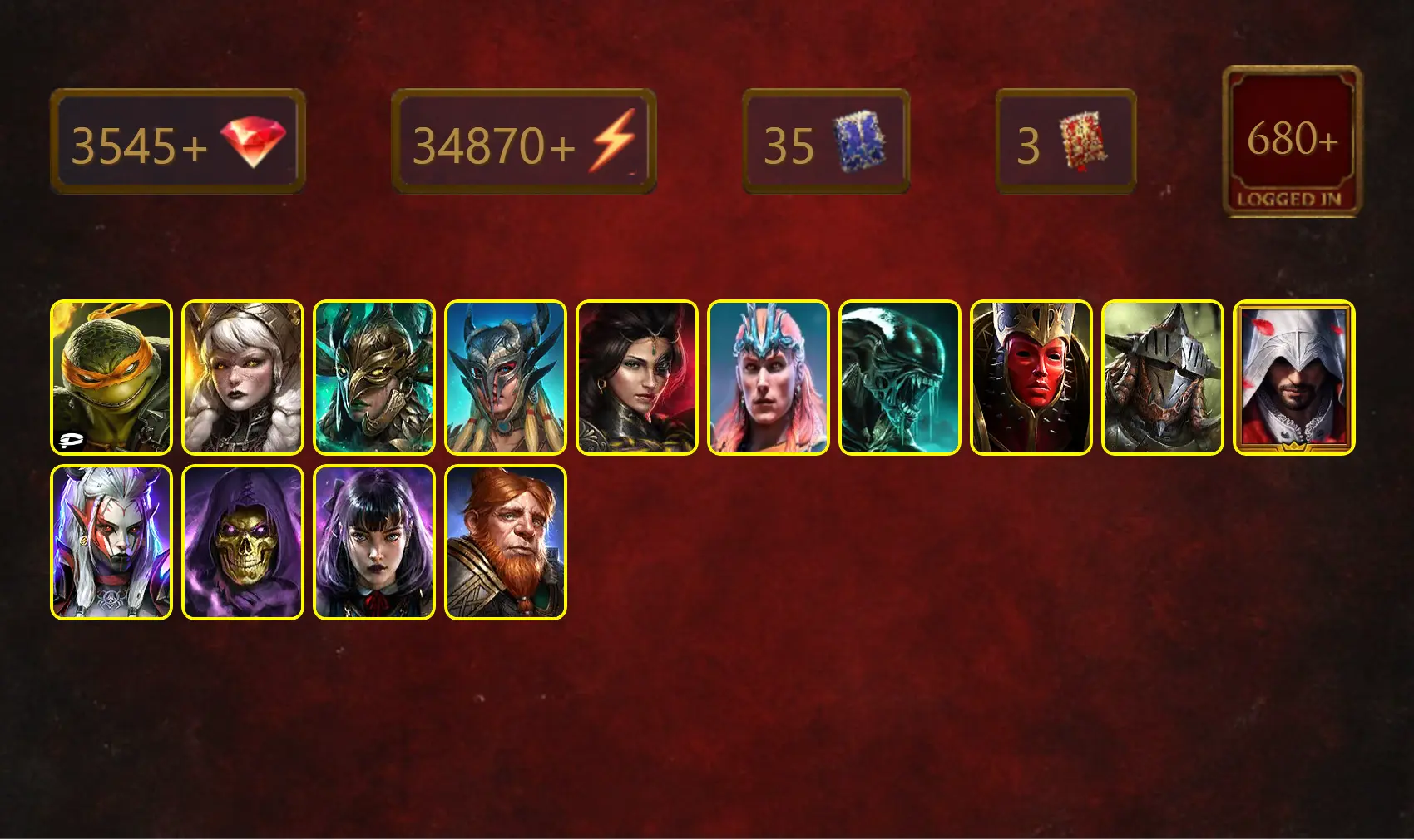 [STARTER]Gnut+Senna Amberheart+Michelangelo+Leminisi the Gold-Wing+Shemnath+Scyl+Adelyn+Loki+Xenomorph+Mother Cybele+40Epics