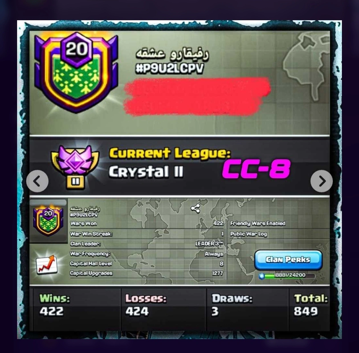 50% OFF LVL 20 CHEAPEST CLAN ❄️ وفيقارو عشقه (love friends) Meaning ❄️ CC- 8 ❄️ WARLOG EQUAL ❄️ CRYSTAL - 2 ❄️