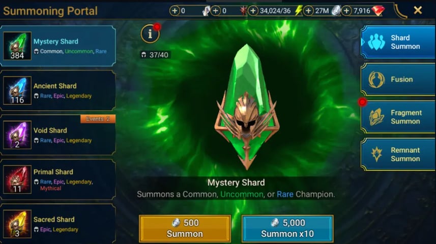Starter.8000 Gems+ 3*Sacred+ 10*Primal shard+ 2*Void shard+ 100*Ancient shard+ 350*Mystery shard+Energy 30000 +Silver 25M+6~10 legendary