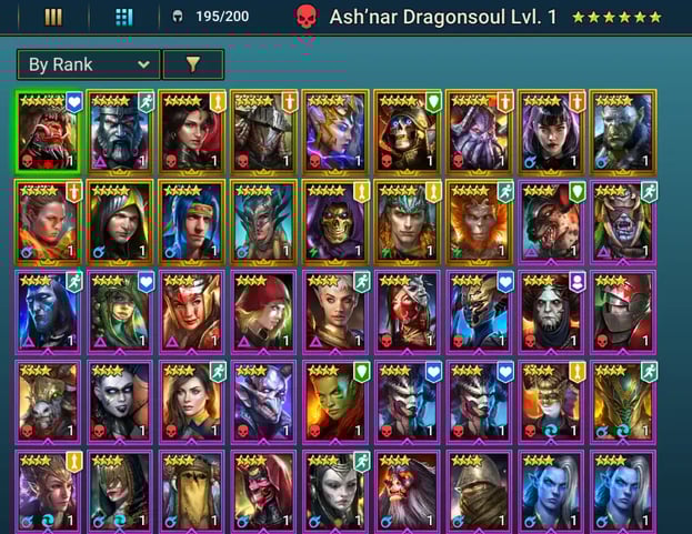 Started. Mythical Ash'nar dragonsoul. 15 legendary. 8100 gems