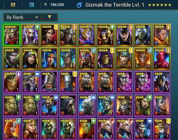 Starter.Mythical. Gizmak the Terrible. 17 legendary. 8500 gems