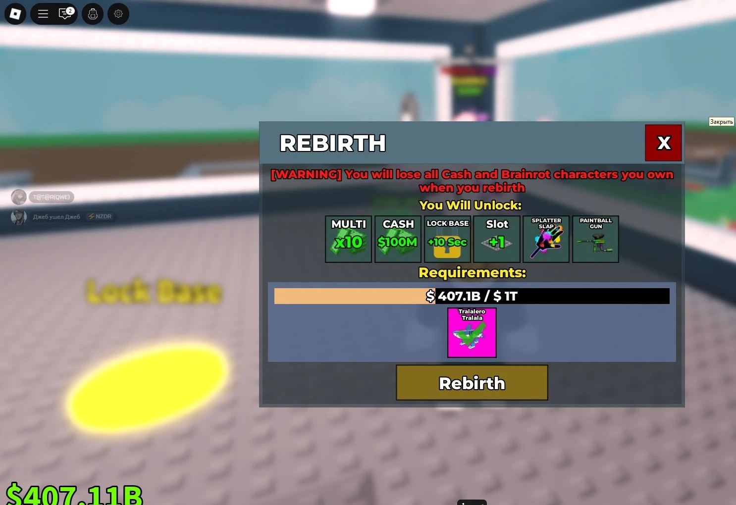 x12 GOD BRAINROTS + x3 LUCKY BLOCKS + x3 SECRET BRAINROTS + 10 REBIRTHS + 407 BILLION $+Full Access+Instant Delivery + Full Access + Instant Delivery 24/7 #GSD121W