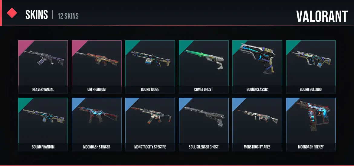 12 Skins / 3550 VP SPENT / Reaver Vandal / Oni Phantom