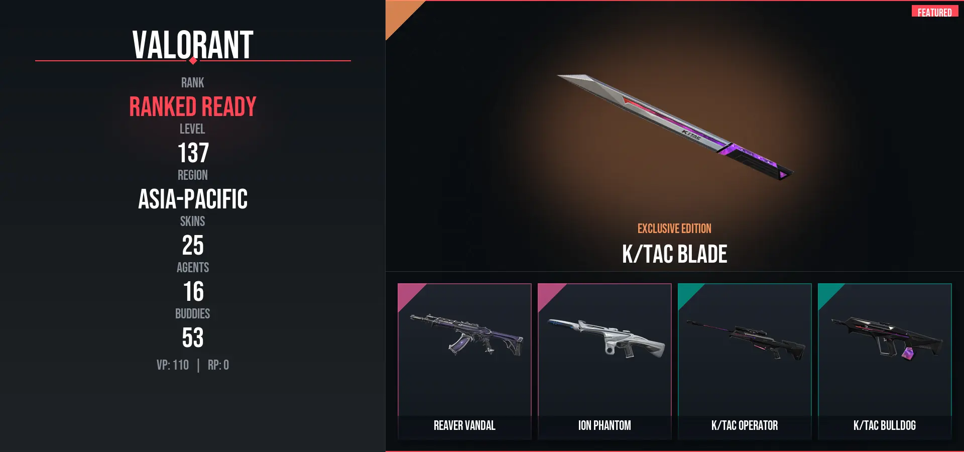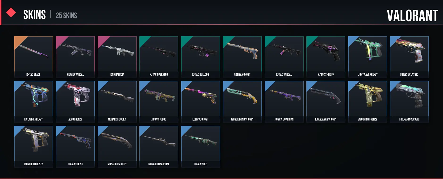 25 Skins / 3550 VP SPENT / K/TAC Blade / Reaver Vandal / Ion Phantom