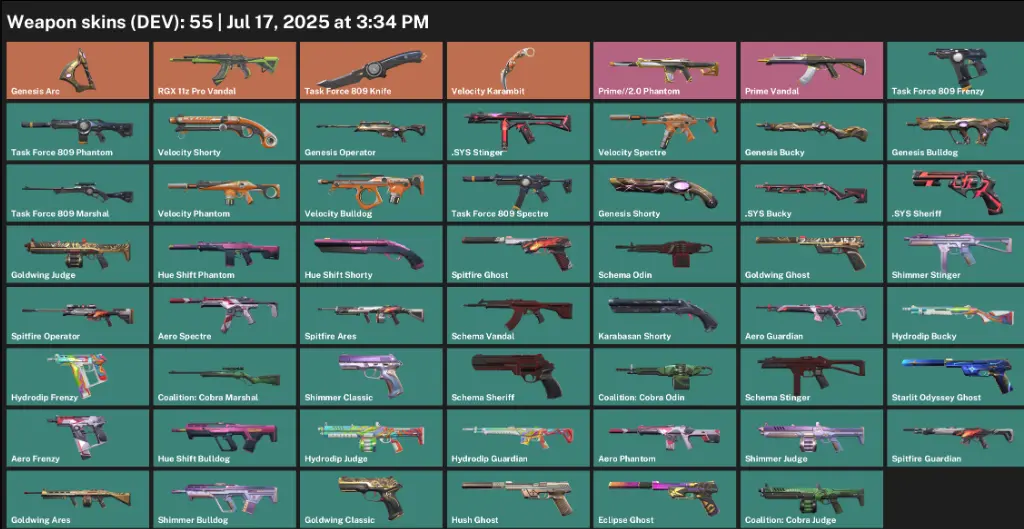 [AP] 🔥 55 Skins • RGX 11z Pro Vandal + Prime Vandal + Prime//2.0 Phantom + Velocity Karambit • 5,725 VP • Full Access