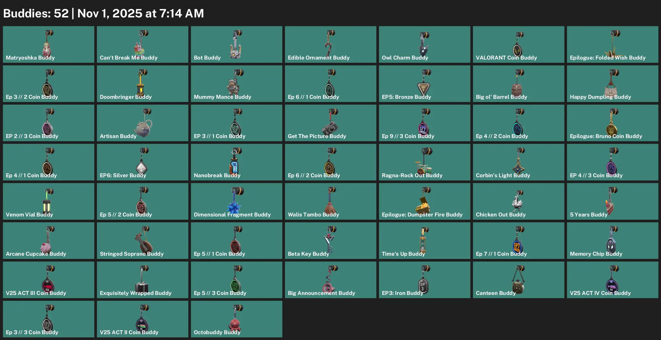 🎓 AP 🧗♂️ Unranked 🦼 25 Skins 🏖 66 VP 🏝 21 Agents 🛍 Value: 25800 VP 🐻❄️ Elderflame Operator 🌲 Phaseguard Ghost 🎚 Phaseguard Vandal 📱 Doombringer Sheriff 🦬 Doombringer Judge 🐉 Doombringer Battleaxe
