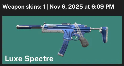 📽 NA ✉️ Unranked 🍈 1 Skins 😁 175 VP 🤡 2 Agents 🧗♂️ Value: 875 VP 🪧 Luxe Spectre