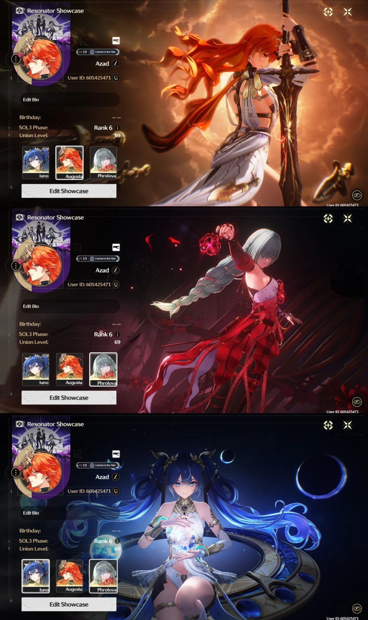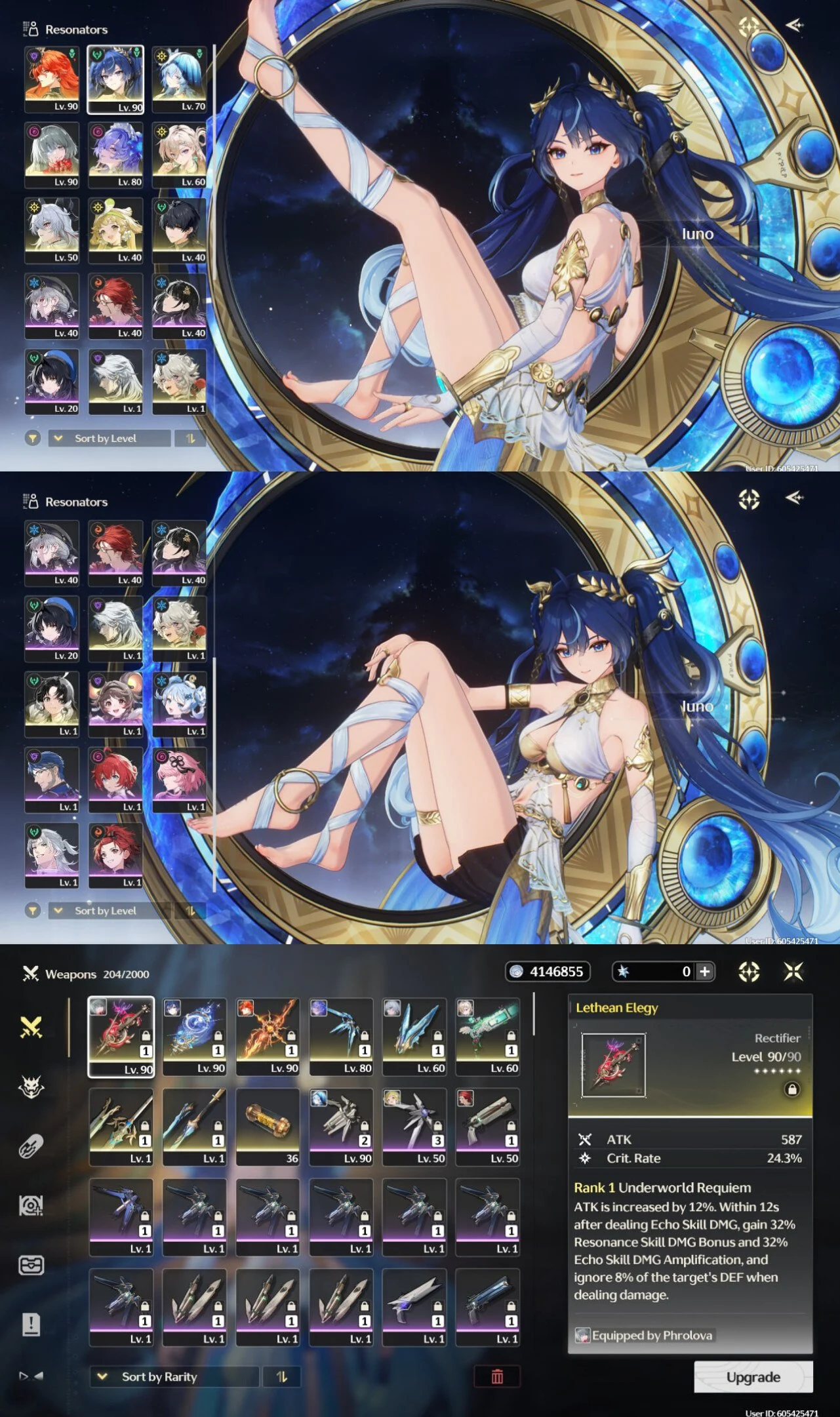 All Platform ⚔️ EU 🇪🇺 Union69 💎 23 Character 12 5'Star 🌟 8 Weapon 5'Star 🌹 Augusta 🏹 Iuno 💯 Lynae ⚡ Phrolova ⚡ Shorekeeper 🔥 Code1498