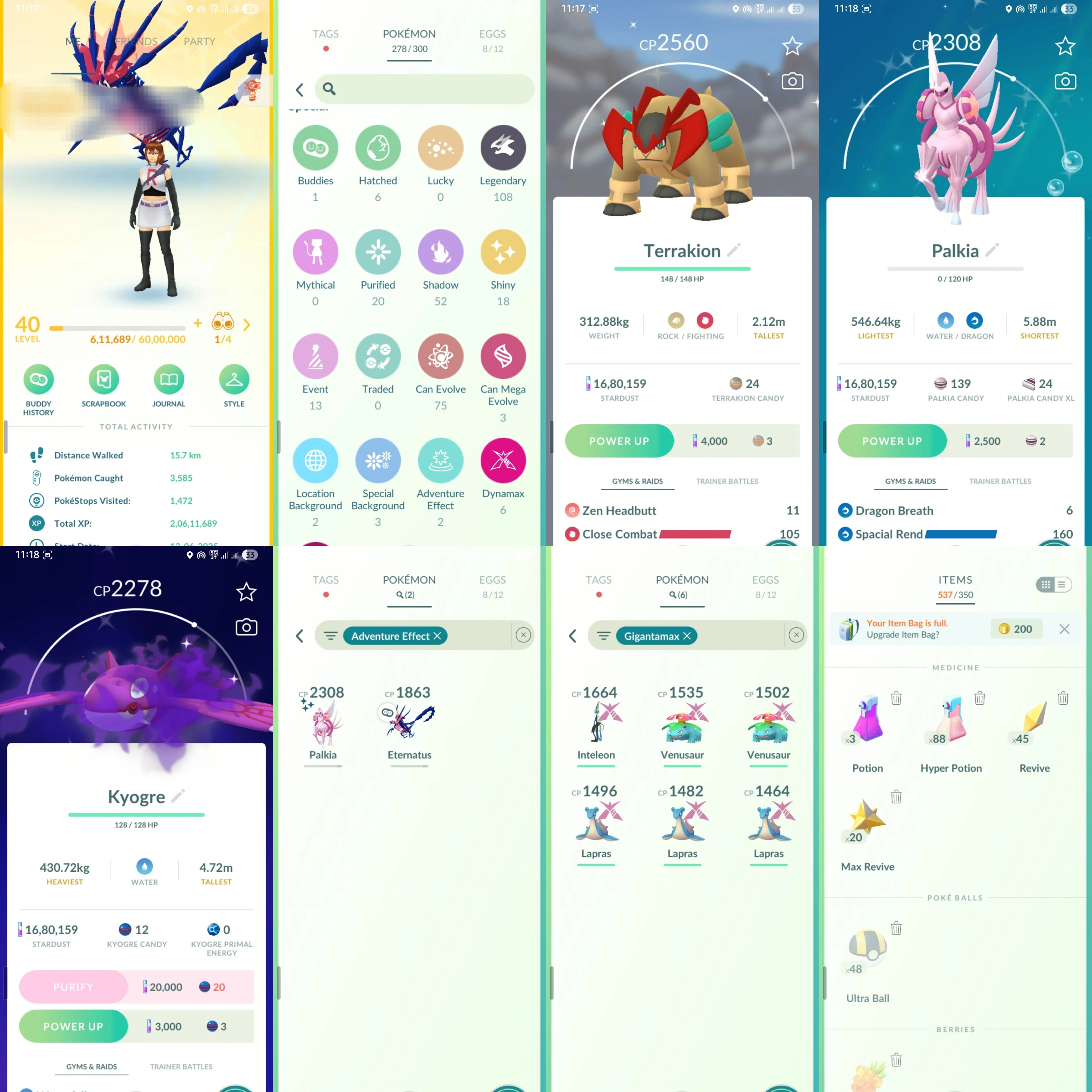 [1.6M+STARDUST]-[SHINY REND PALKIA, SHINY PSYDUCK, SHINY-LEGENDRY (TERRAKION, DIALGA, KYOGRE)] 40 INSTINCT | 108+LEGENDRY | 278 MONS