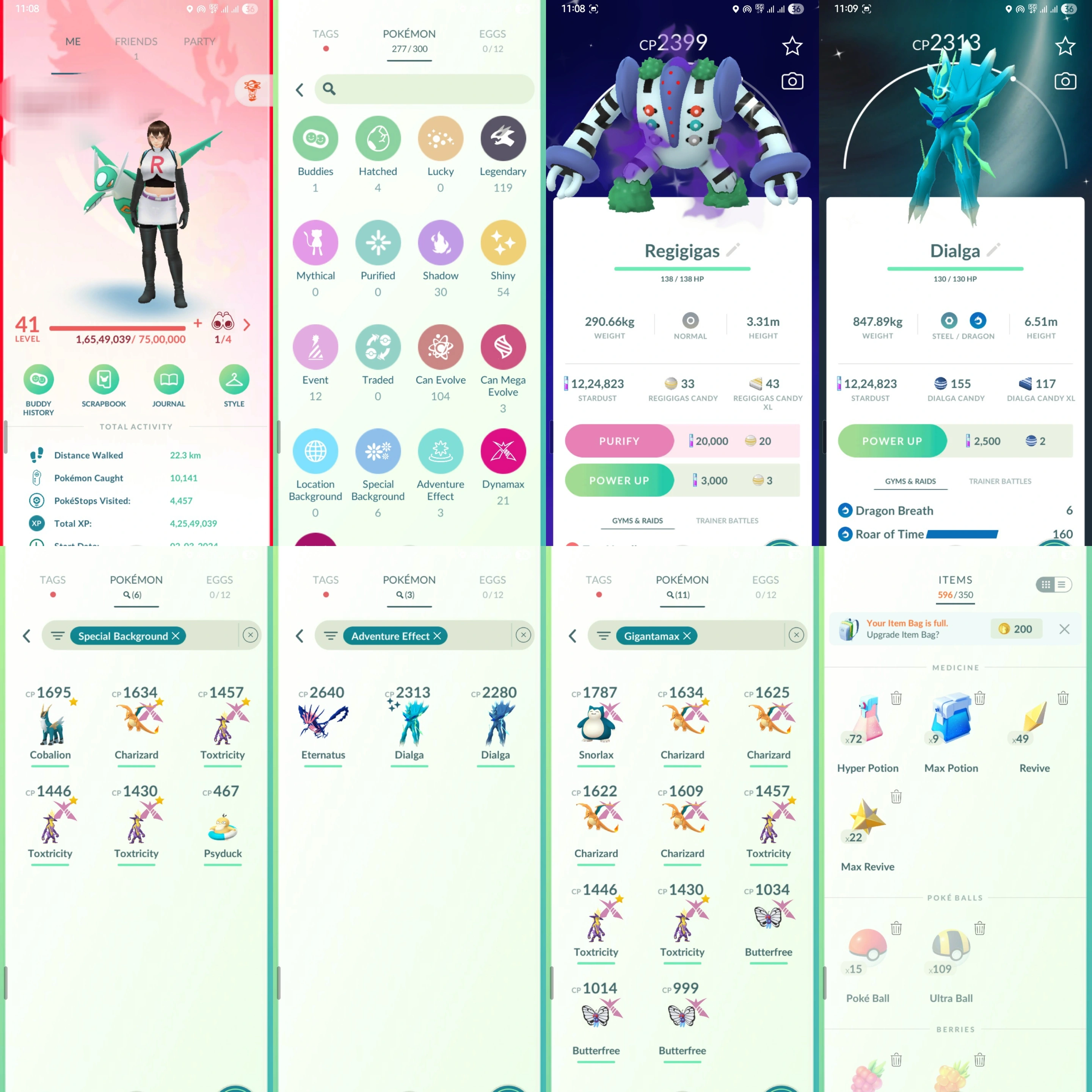 [1M+DUST]-[SHINY ROT DIALGA, SPECIAL BG (GMAX CHARIZARD, COBALION), SHINY-LEGENDRY (NECROZMA, PALKIA, REGIGIGAS)] 41 VALOR | 119+LEGENDRY | 54+SHINY