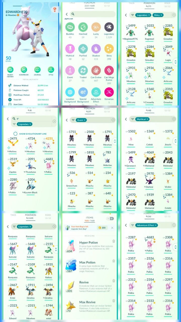 Level50 | 223M Xp | 1129 Legendary | 398 Shiny | 77 Shiny Legend | 5 Armour Mewtwo Tradable | Rayquaza | 4600 Pokemon Bag | 7600 Item Bag | 7 Hundo Legend | 1 Shundo Legend | Shiny Celebi | Fully Stacked And Rare