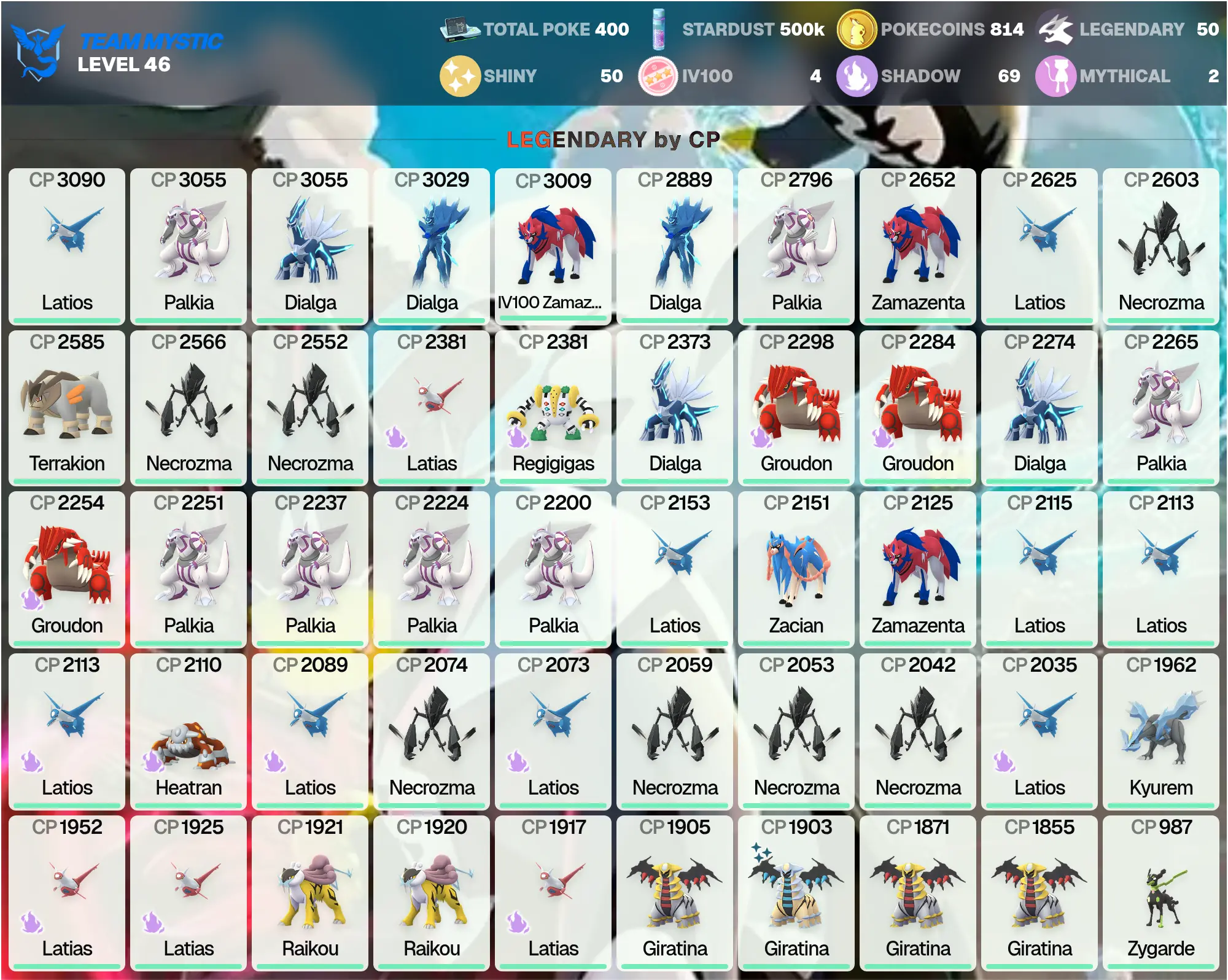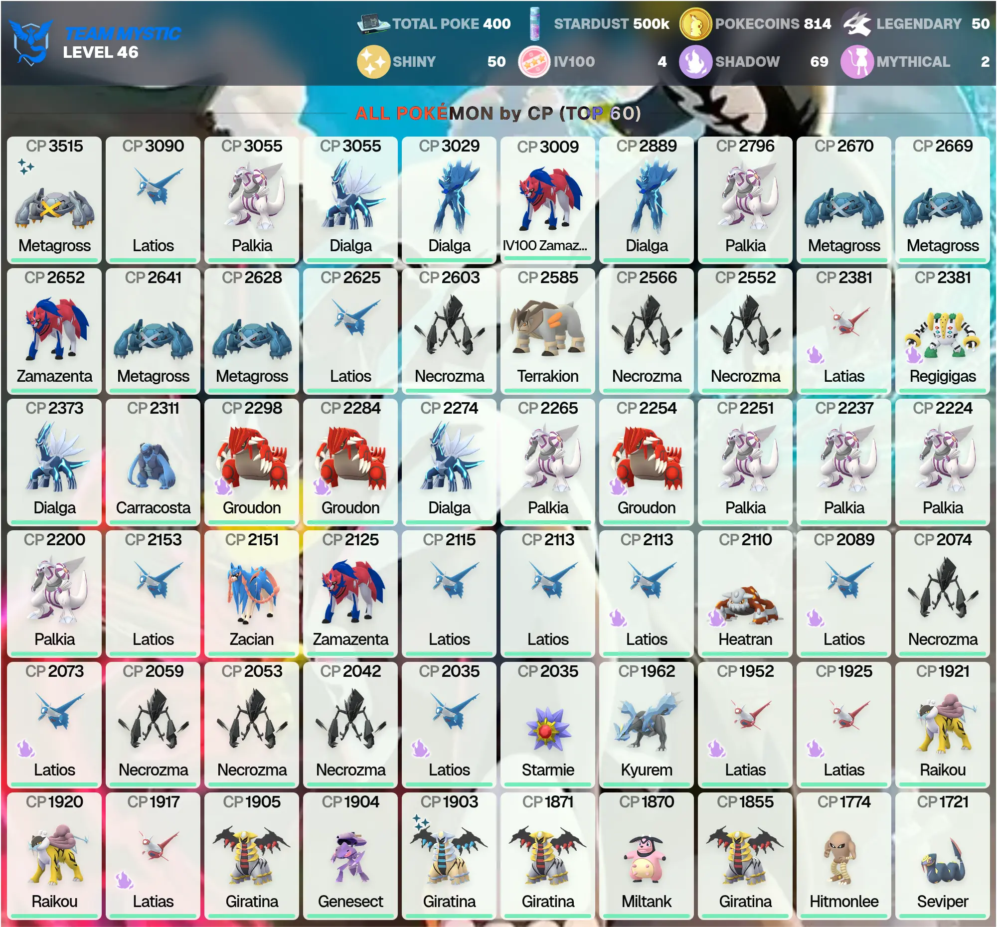 👑 POGO 🏆 IV100 Zamazenta 3K 🛡️ | Shiny Giratina 👻 | Palkia 3K 🌊 | MEGA: Shiny Metagross 4.5K 🤖, Latios 4K 🐉 | Shiny: 50 ✨ | Legendary: 50 🌟 | Dialga 3K ⏳ | [MG] | PG-VYNKJ !MKG016343