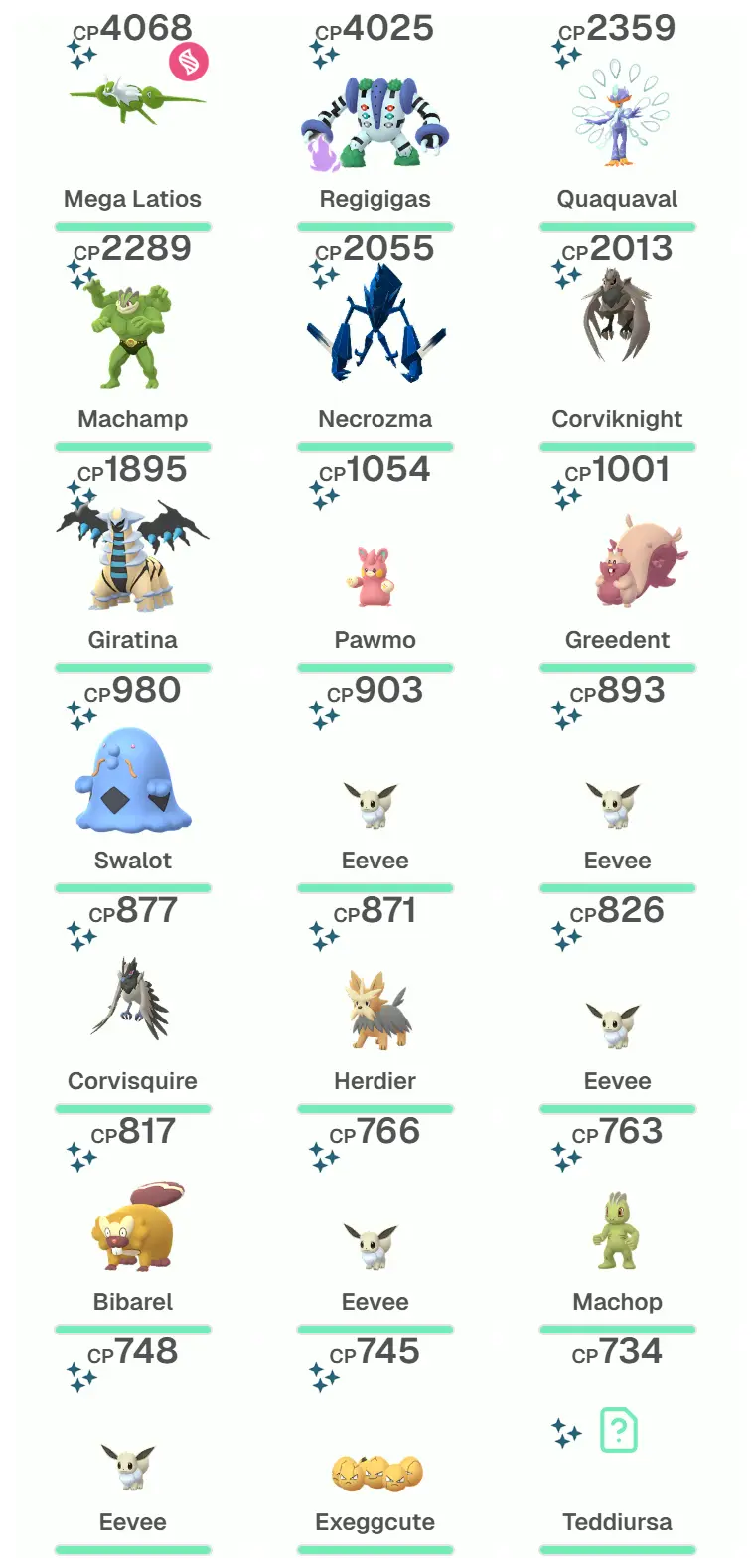 ⭐ Shiny ❄️ Shadow Regigigas 4K 💎 IV100 Regigigas 3,6K 🔥 Legendary: 84 ⭐ Shiny: 80 ⭐ Shiny:Necrozma,Altered Giratina ⭐ Shiny 💪 .. PG-GYROV