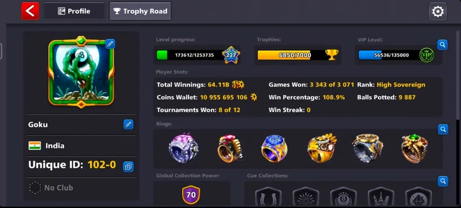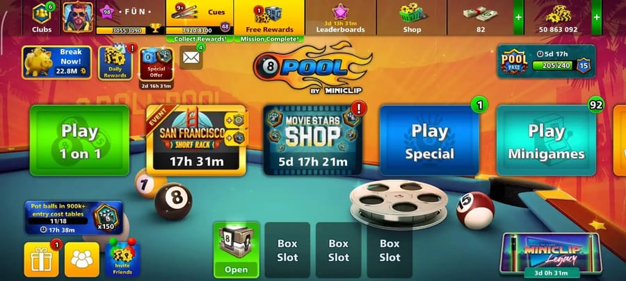 O que diferencia o 8 Ball Pool é o quanto o seu progresso importa. Não se trata apenas de ganhar algumas partidas aqui e ali—é sobre construir um perfil que resista ao tempo. Isso significa coletar moedas, desbloquear tacos com estatísticas melhores, completar missões e ganhar troféus que exibem sua habilidade.