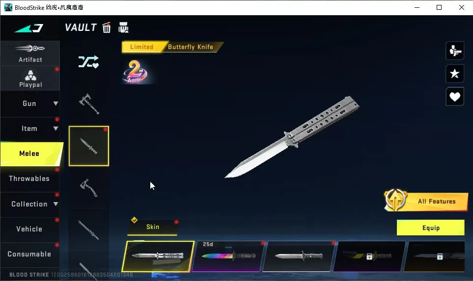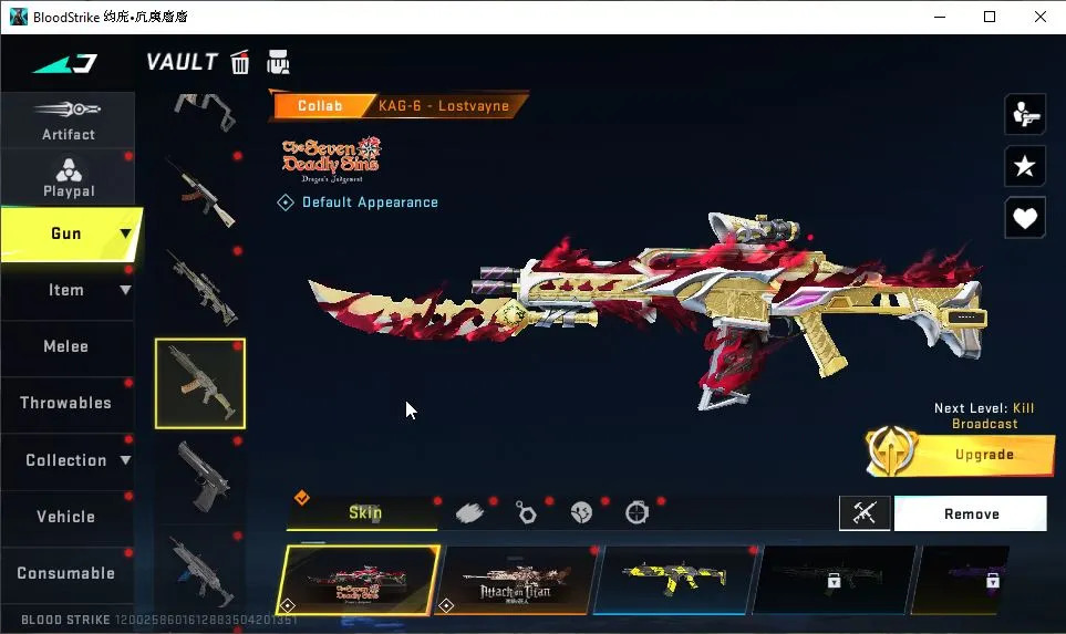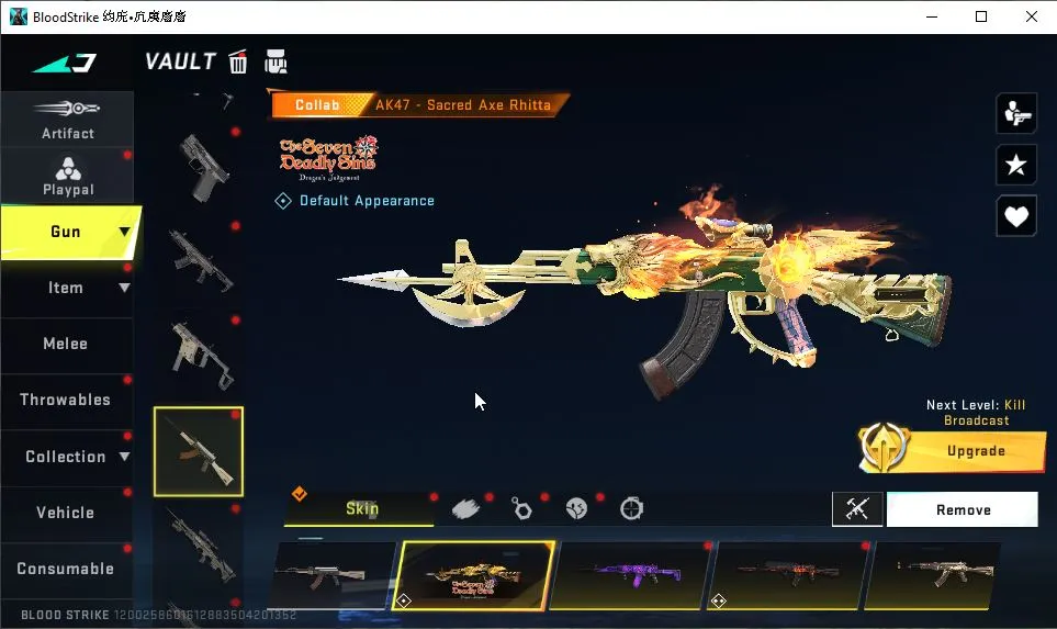 ASIA|Melee ULTRA Scythe|Collab 7DS[QBZ95,KAG-6,AK47]+EVA[KATYA,MCX,SCAR]|21 ULTRA[ZERO,VAL,MP5,Etc]|4 Limited|NetEase(BLS3906)