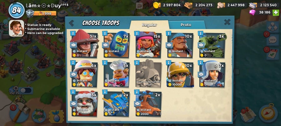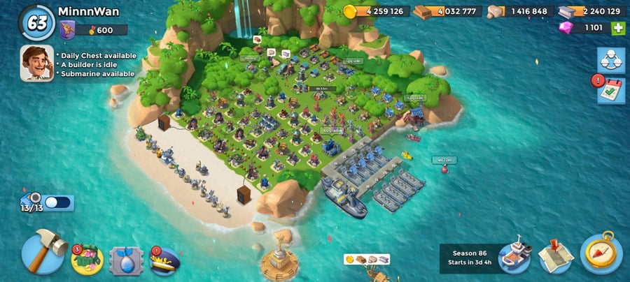 BB869: Lv84 ⸱ HQ28 ⸱ VP 1596 ⸱ POWER 213 | Sculptor Lv11 (13/13) | Submarine lv10 ⸱ 8 GUNBOAT 27|