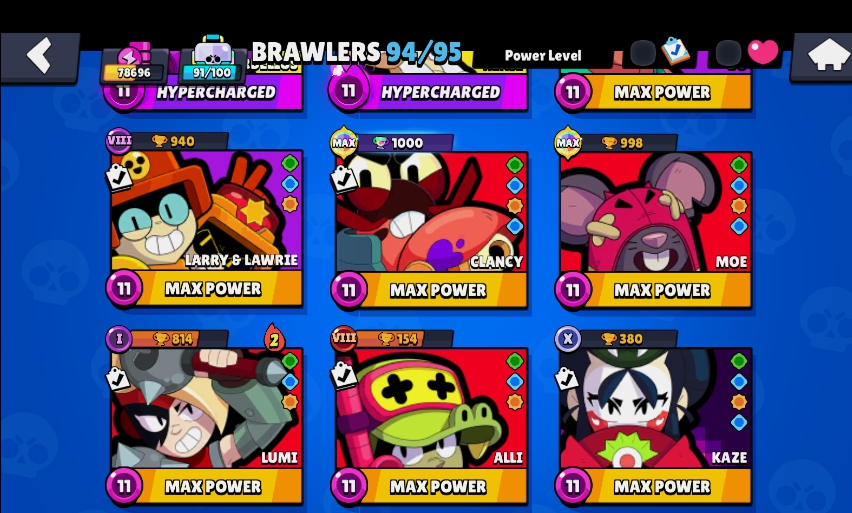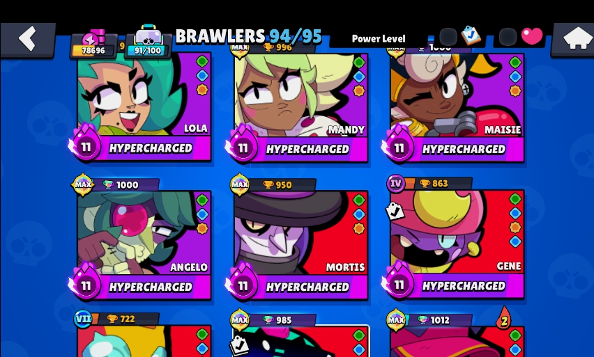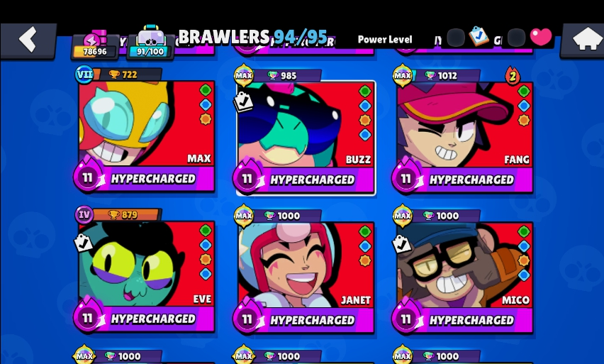 11.11 PIN ⭐ 19 TITLES ⭐ 271 SKINS ⭐ 78.700 TROPHY ⭐ 94 BRAWLERS ⭐ 32 HYPERCHARGED ⭐ 39 MAXED BRAWLERS ⭐ BANANAS COLT ⭐ BORN BAD BUZZ ⭐ FURIOS FANG ⭐ VALKYRIE JANET ⭐ CHAINSAW BUSTER ⭐ LEGENDARY