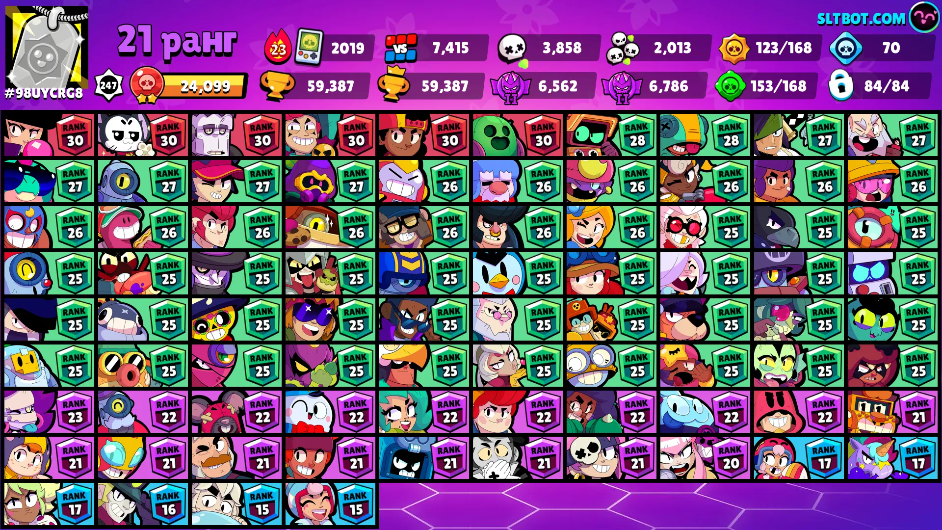 138 SKINS 🩵 59.387 TROPHIES 🏆 84 BRAWLERS 🧸 22 HYPERCHARGED 🩸 33 MAX BRAWLERS 🩷 MECHA MORTIS 🩵 ARES NANI 🩵 LOKI CHESTER 🩵 PERISCOPE PEARL 🩵 ONI OTIS 🩵 ODIN CORDELIUS 🎀