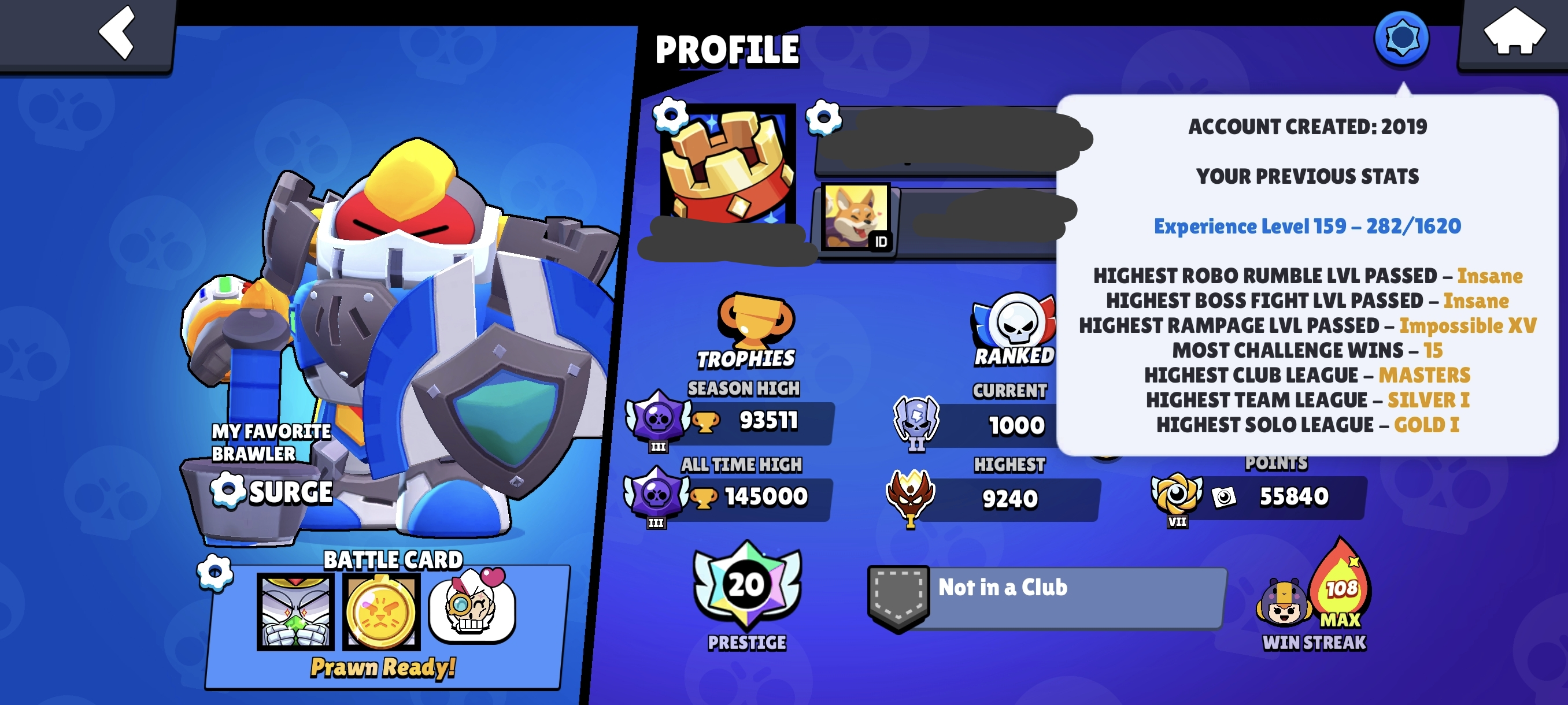💫 145k Trophy 💫 20x Prestige 💫 1x old Masters 💫 Red KIng Frank 💫 Mecha Paladin Surge 💫 Belle Goldhand 💫 Furious Fang 💫 King Lou 💫