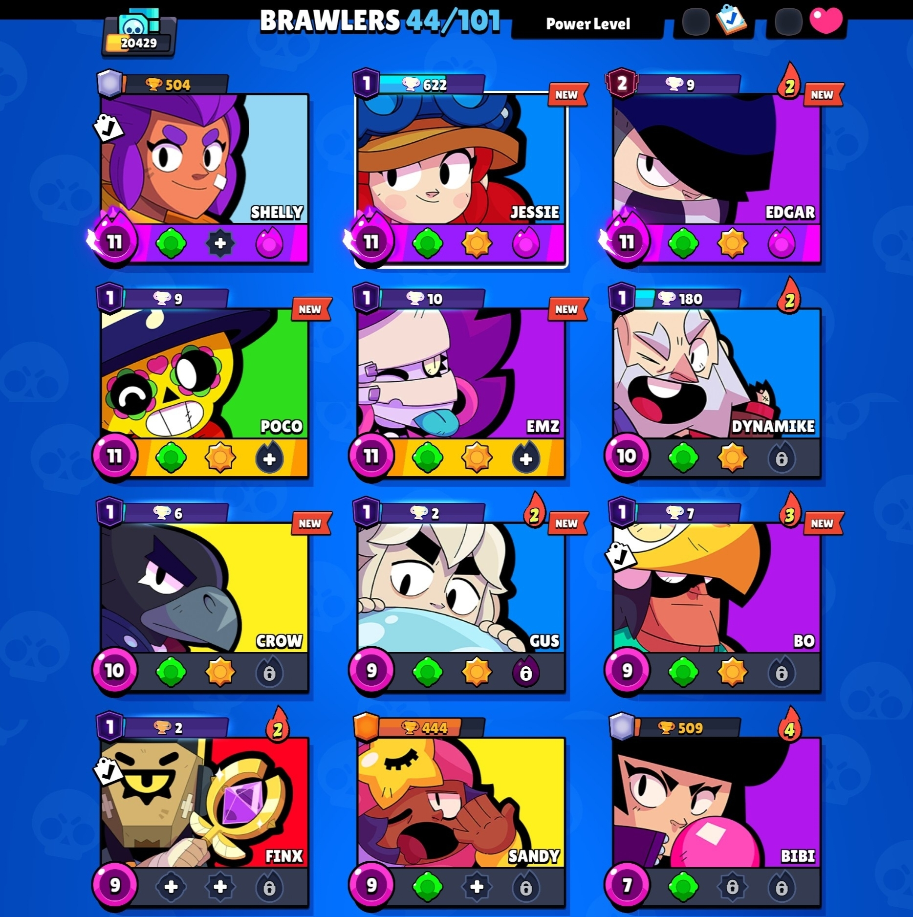 20k TROPHY, 44 BRAWLERS [5 Maxed + 10 Hypercharged UNLOCK] 31 Skins, 10 Prestige, 5 Bluffies | Made in 2026 Year, 1K Matches Played | VR418