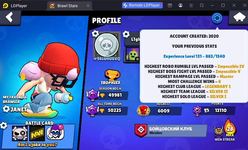 211 SKINS 💯 TRICKY JANET 🧡 49.952 TROPHIES 🏆 94 BRAWLERS 🐼 18 HYPERCHARGED 🩸 28 MAX BRAWLERS 💛 CURSED KENJI 🧡 ANTIVIRUS 8-BIT 🧡 RUDE LOU 🧡 POPCORN RICO 🧡 💯