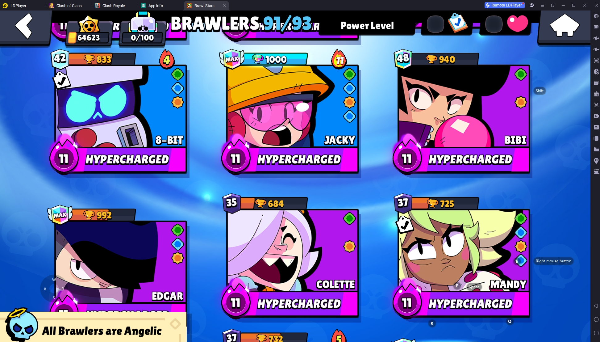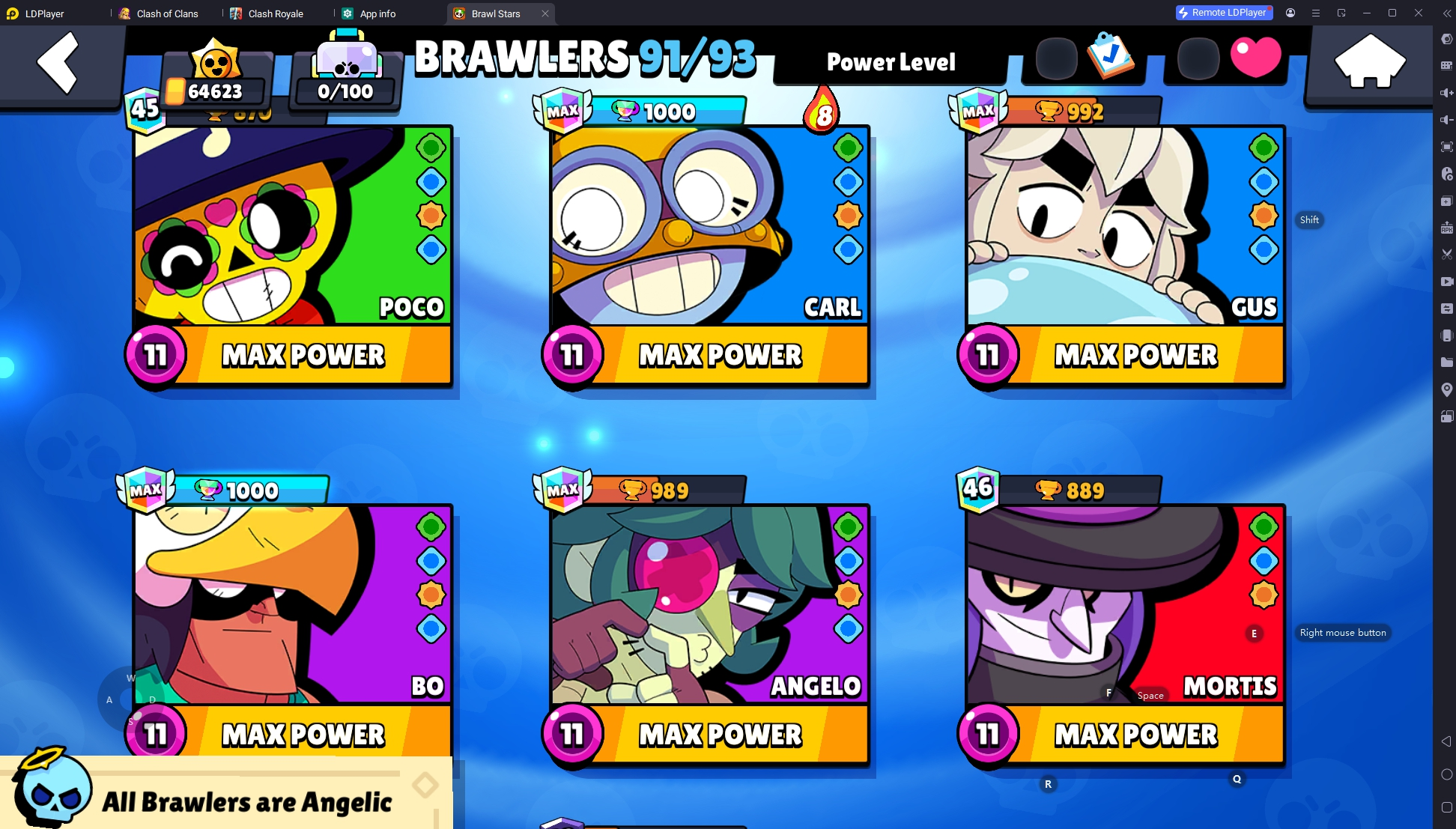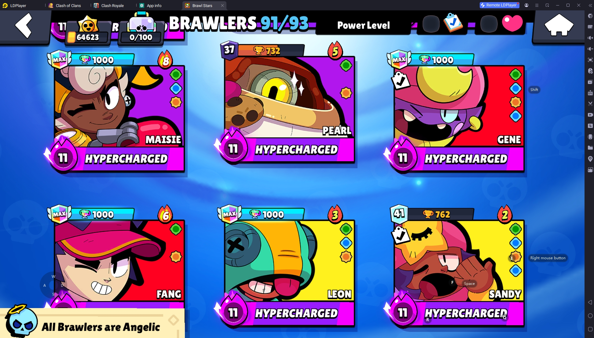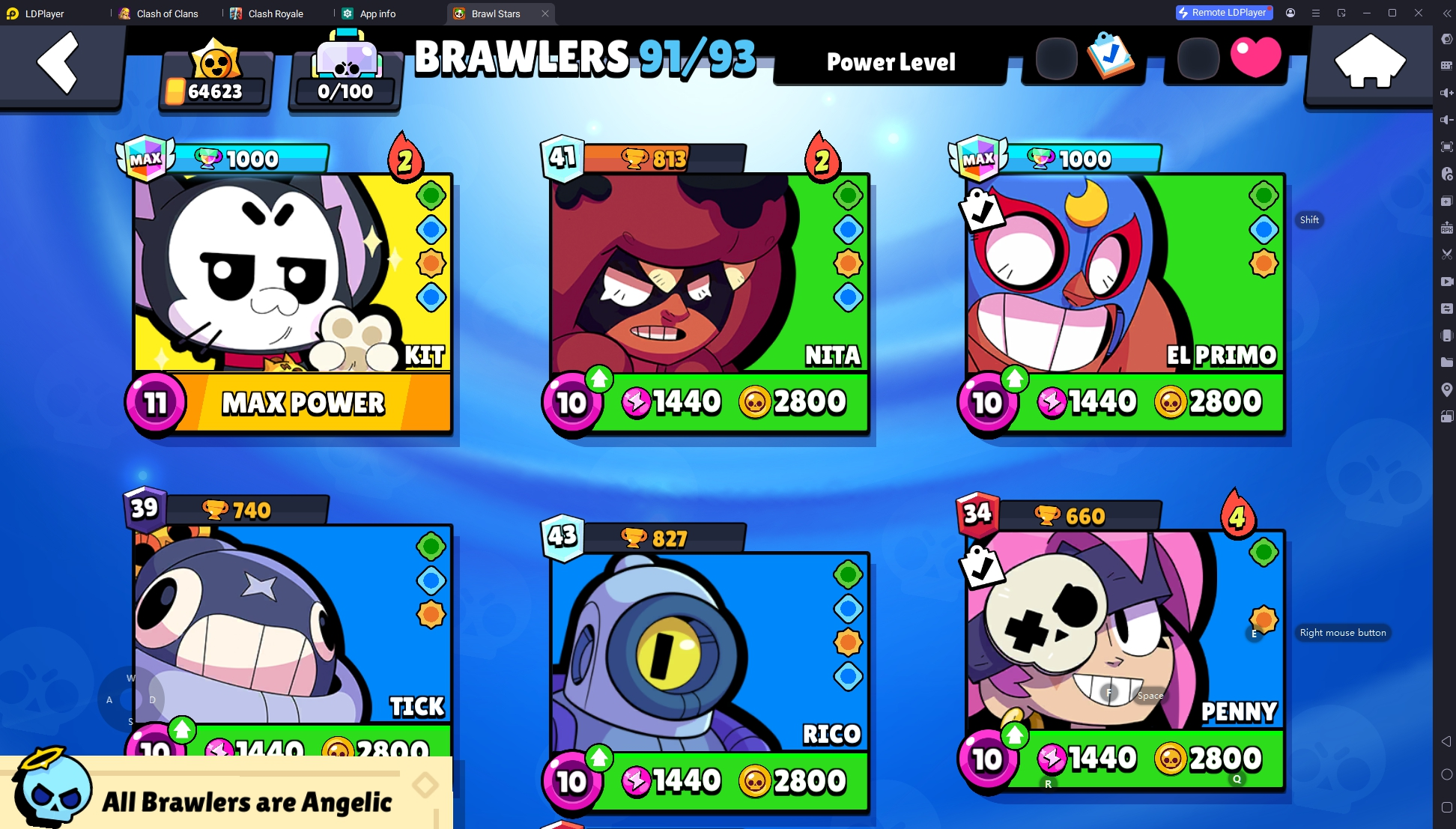 215 SKINS 💯 ROYAL AGENT COLT 🧡 64.623 TROPHIES 🏆 91 BRAWLERS 🐼18 HYPERCHARGED 🩸 31 MAX BRAWLERS 💛 BELLE GOLDHAND 🧡 KING LOU 🧡 LION DANCE BROCK 🧡 RONIN RUFFS 🧡 TRIXIE COLETTE 💯