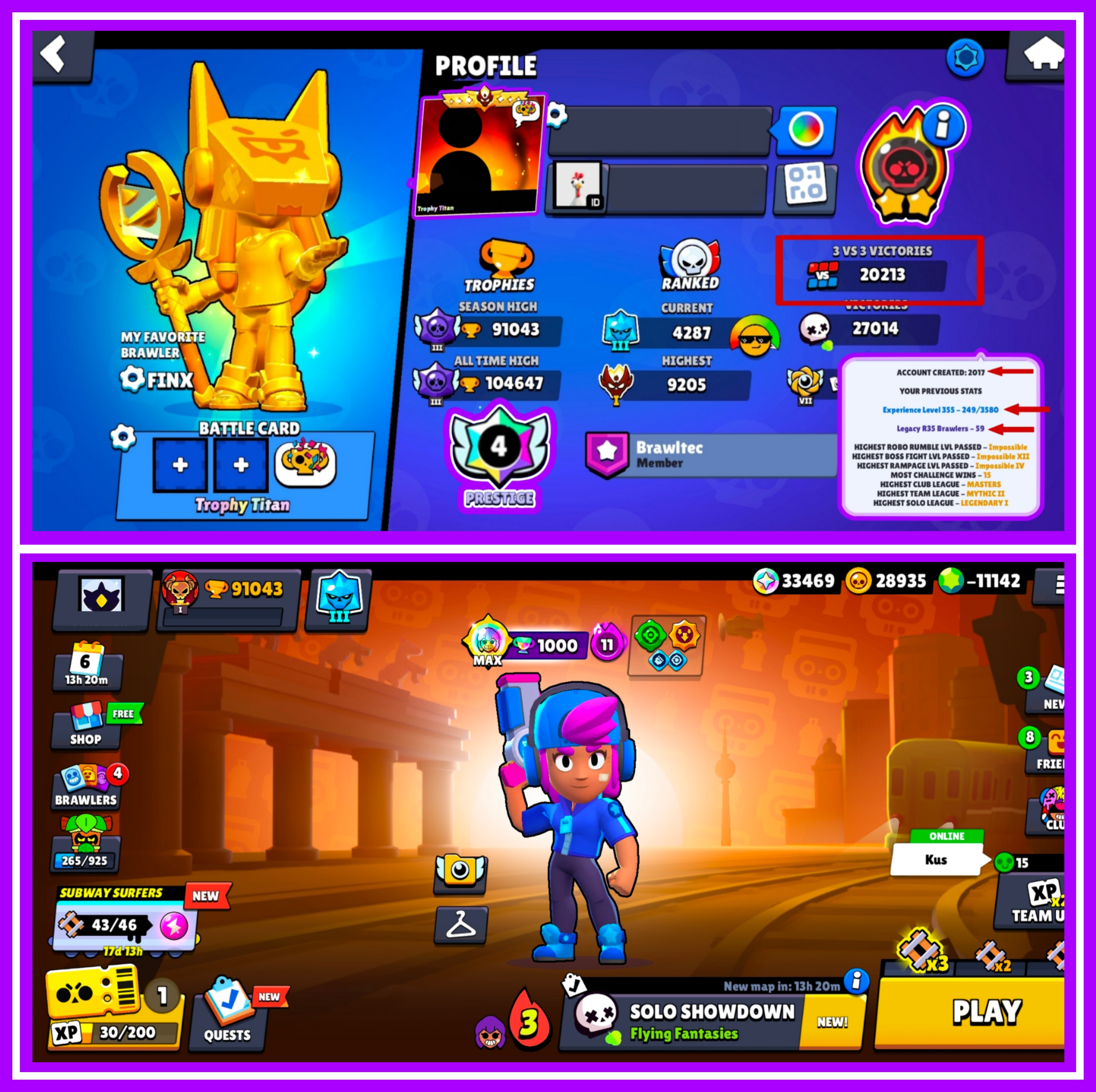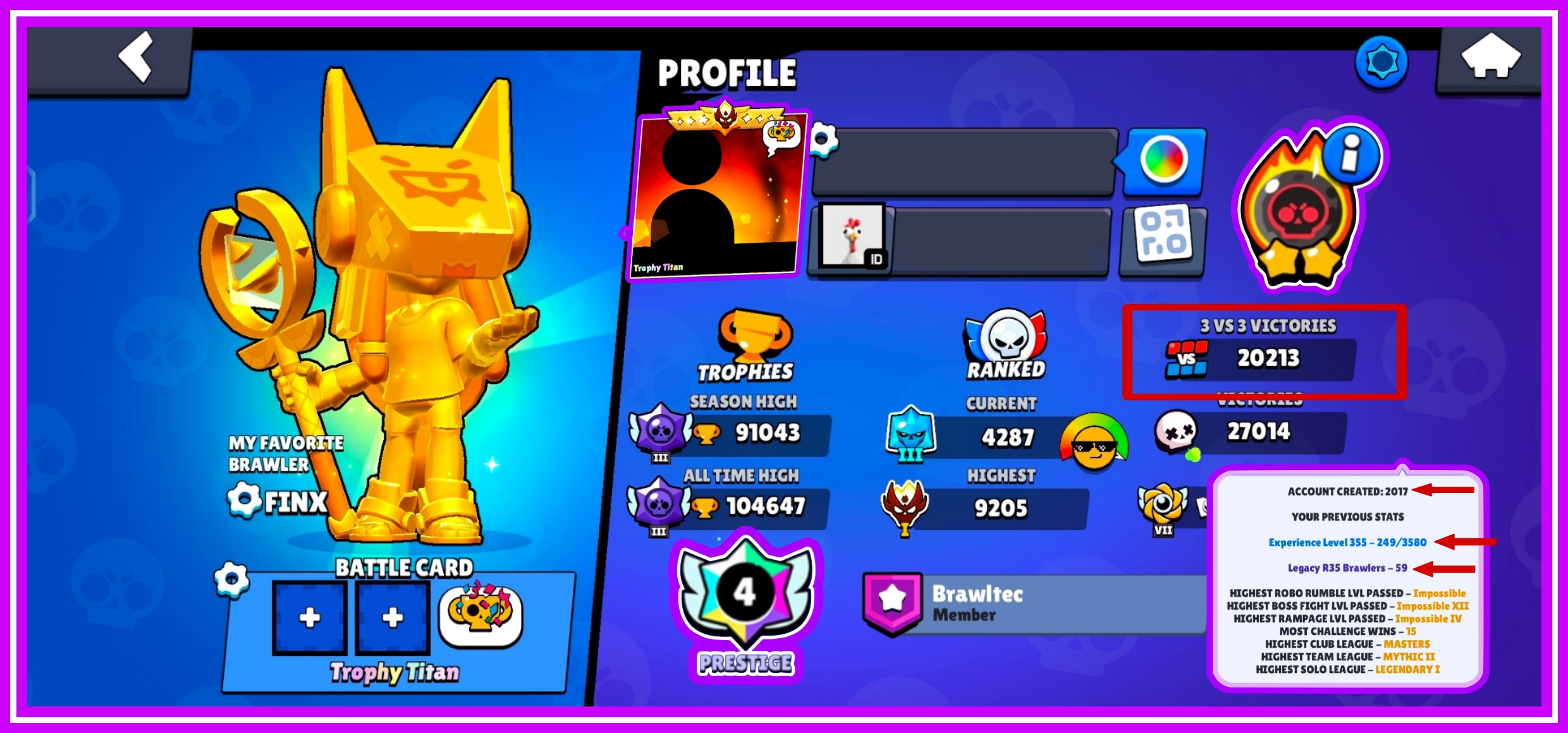 355 EXP 🔥 [FIRST ACCOUNT EVER] 2017 BETA ACCOUNT 🤯 ALL BP EXCLUSIVE + WEREWOLF LEON | 65+ TITLES 🔥 59 R35 + 4 PRESTIGE 💥 400+ SKINS 🪽 FULL MAX 💪113K PP | 30K+ BLINGS | 28k+ GOLD 🥇 100K+ HIGHEST TROPHIES 💯 -11K MINUS GEMS | 6 MASTERS | INSTANT DELIVERY ⚡