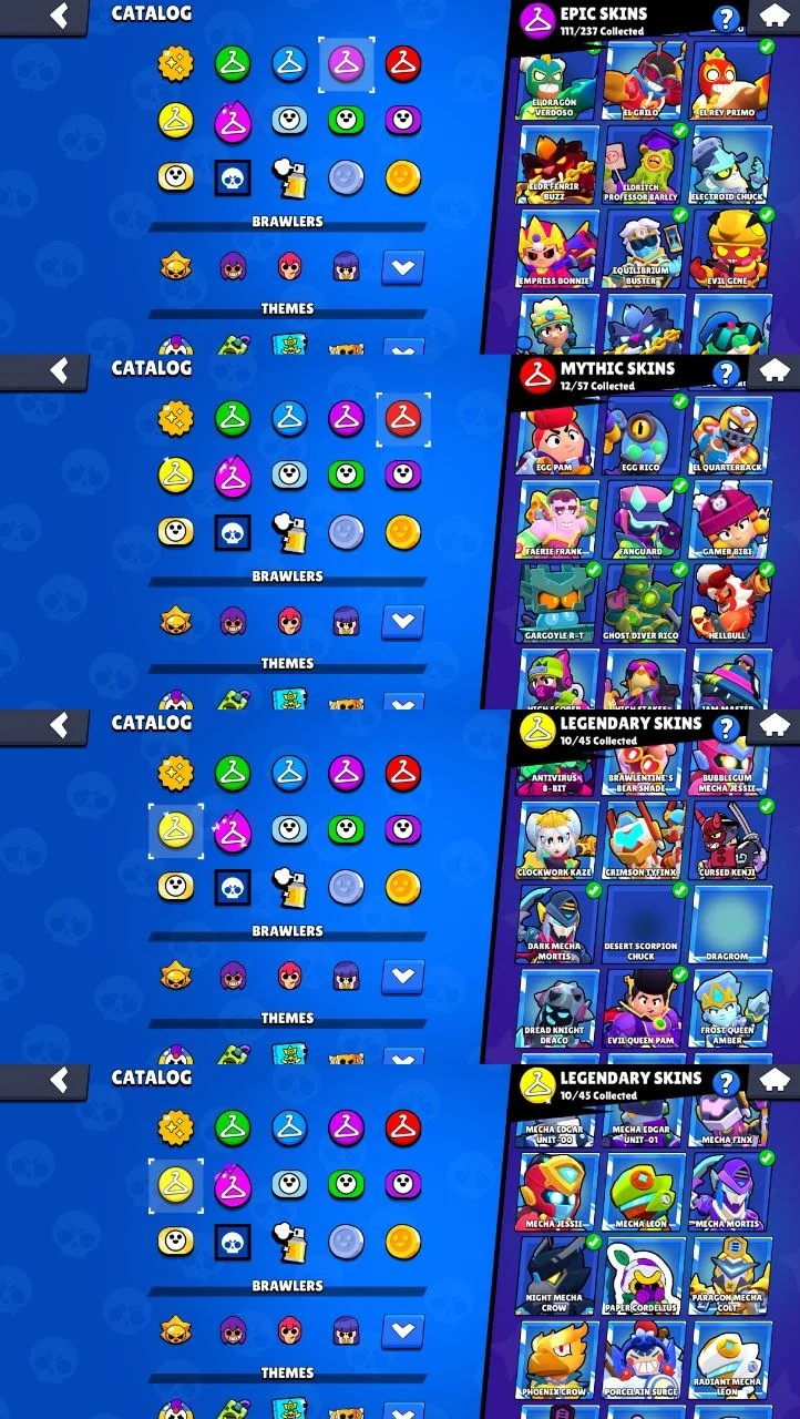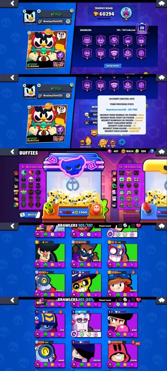 60K 🏆 | 46 🔥 Max | 39 ⚙️ Hyper | 18K 🪙 Coins | 200 💎 Gems | 16 ⚡ Buffies | 320 🎨 Skins | 500 📌 Pins | 10 🌟 Legendary Skins | 🦇 Mecha Mortis | 🛡️ Fanguard | 😈 Hell Bull | 👻 Ghost Diver | 🗿 Gargoyle R-T | 😈 Evil Gene | 111 💎 Epic Skins