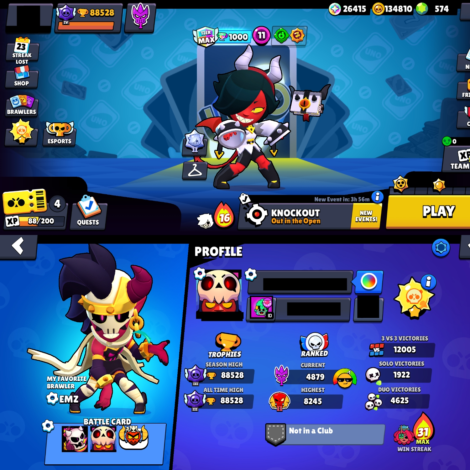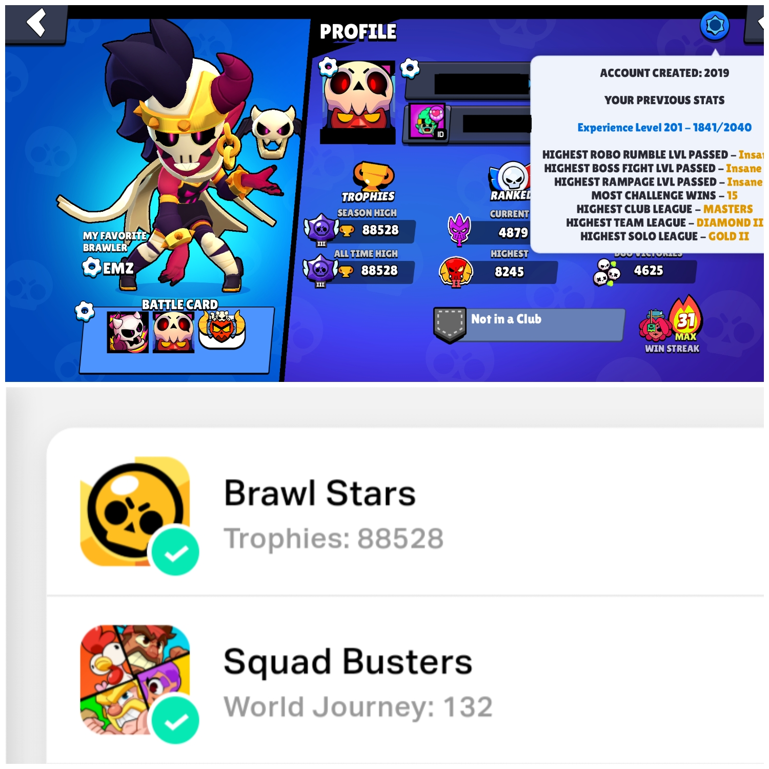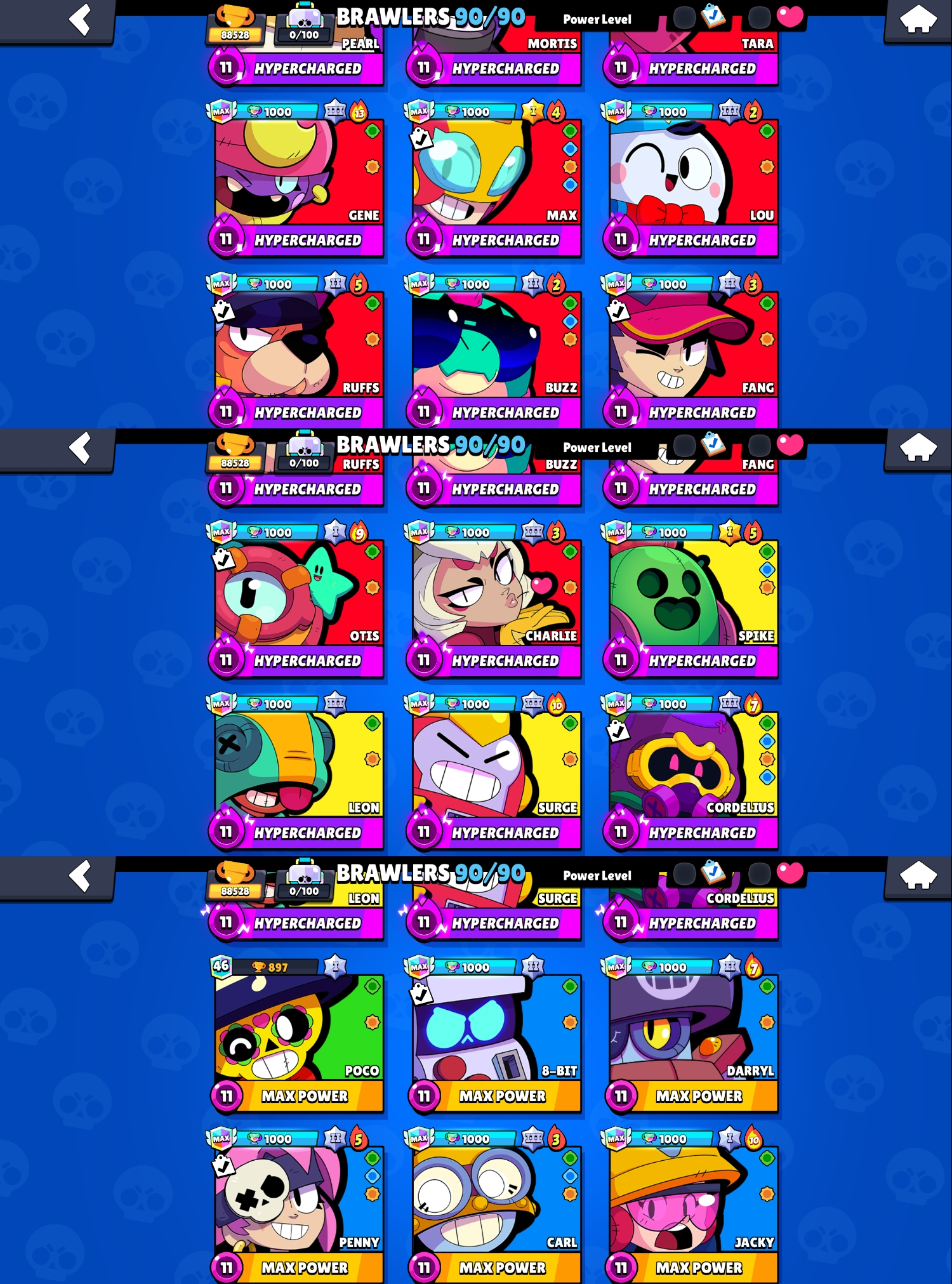 🔥 90 MAXED BRAWLERS 💥 ESPORTS 🔥 88528 TROPHIES 💰 134K GOLD 💎 574 GEMS 🏆 LEGENDARY RANK 🎖 XP LEVEL 201 💎 90 BRAWLERS 🚀 30 HYPERCHARGE 🌟 181 SKINS 🎭 STELLAR SHELLY 🔥 DEMON EMZ ❄️ FIENDISH AMBER ✅ INSTANT DELIVERY