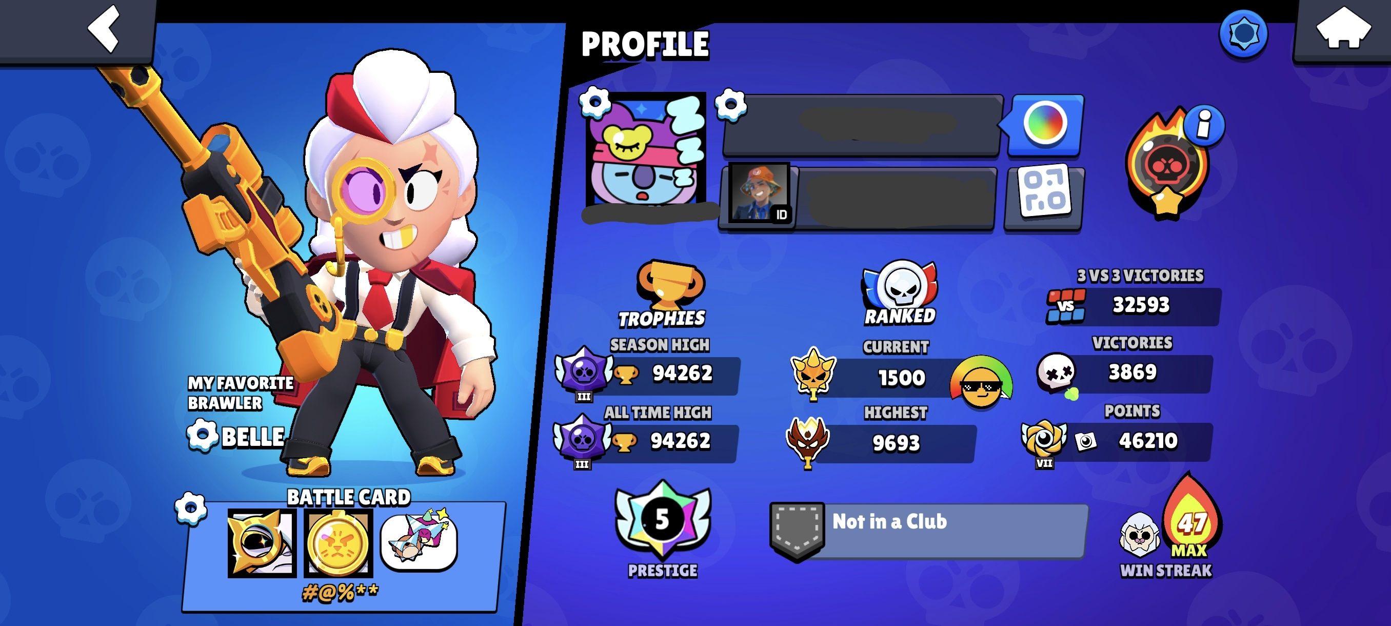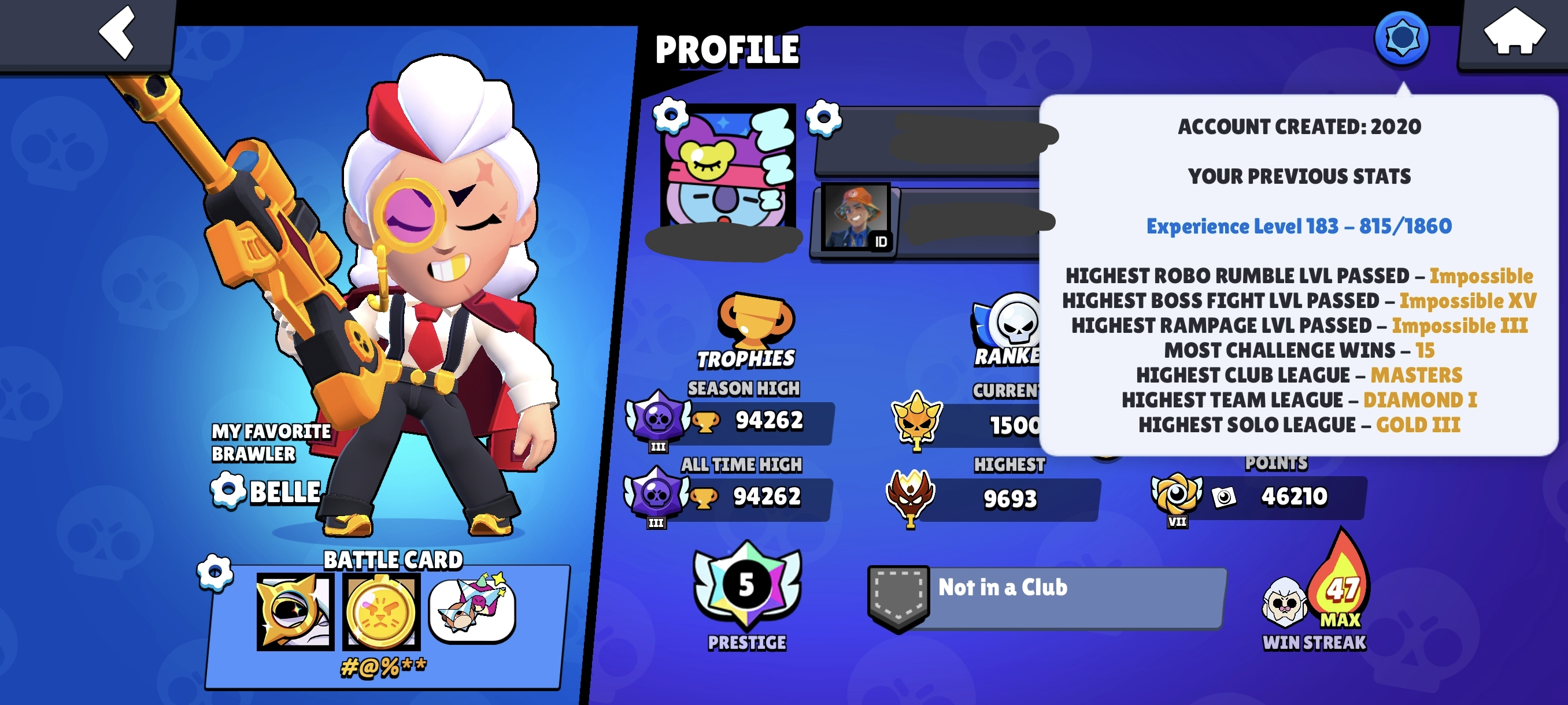 ✨ 94k Trophy ✨ 5x Prestige ✨ 3x Old Masters ✨ 1x New Masters ✨ Meteoric 1 Fame ✨ Belle Goldhand ✨ Furious Fang ✨ Born Bad Buzz ✨