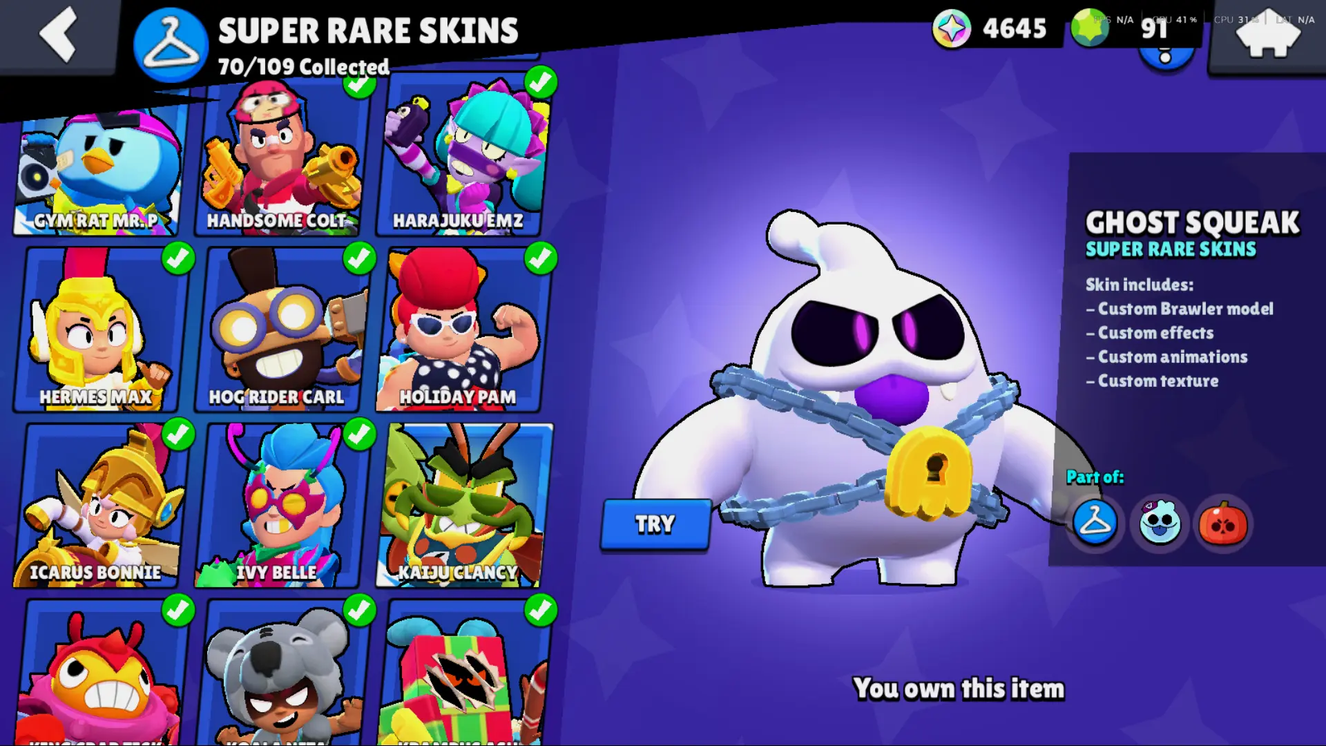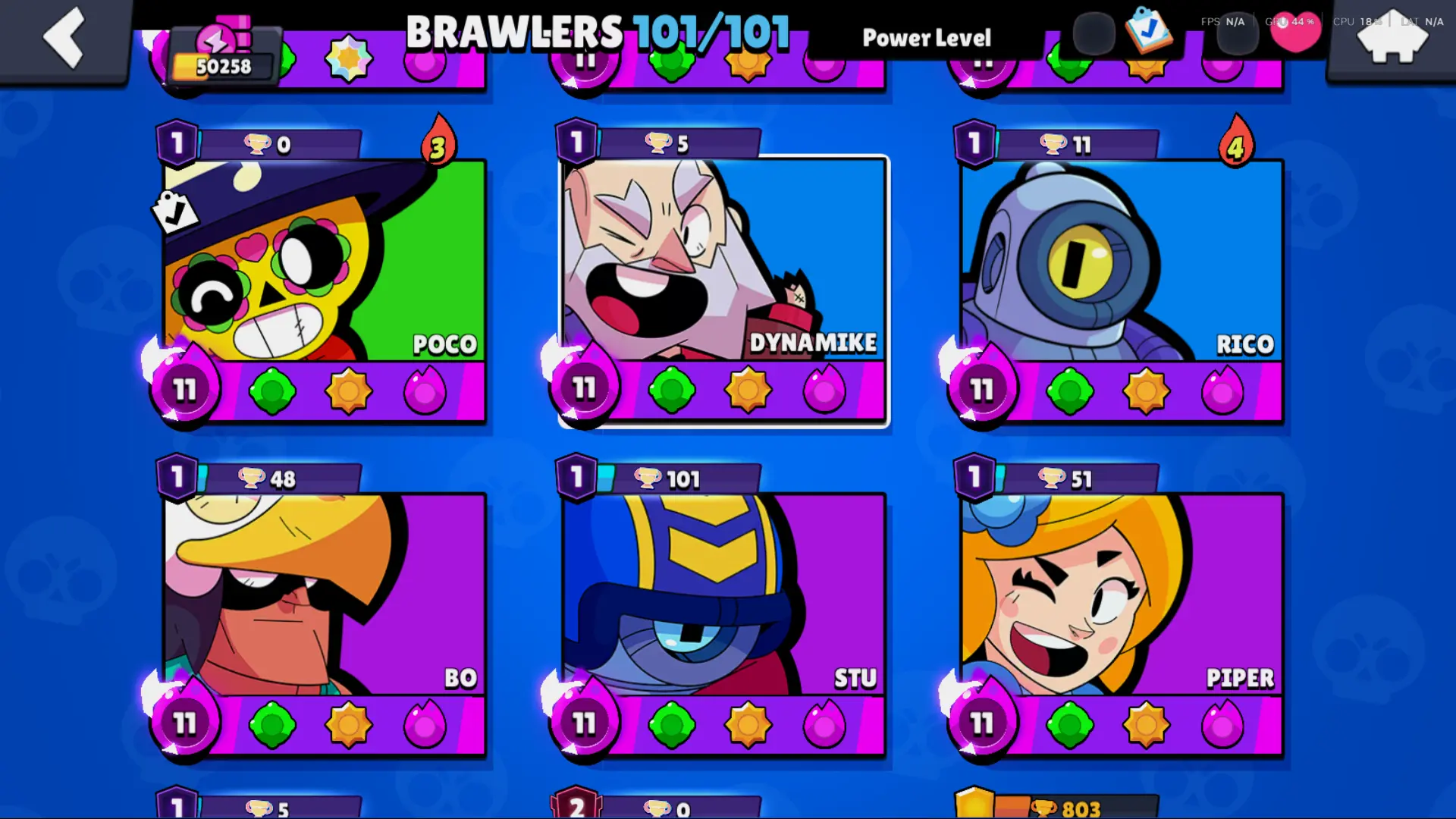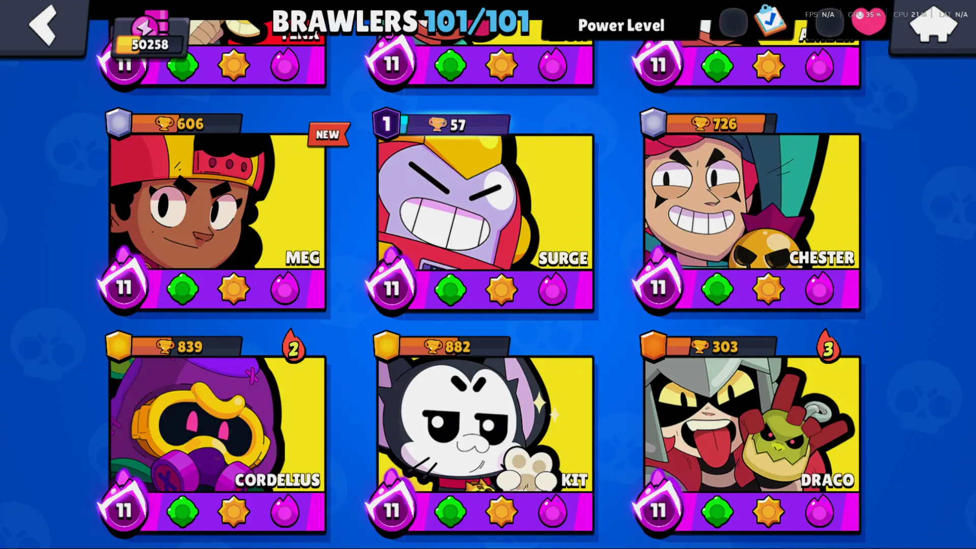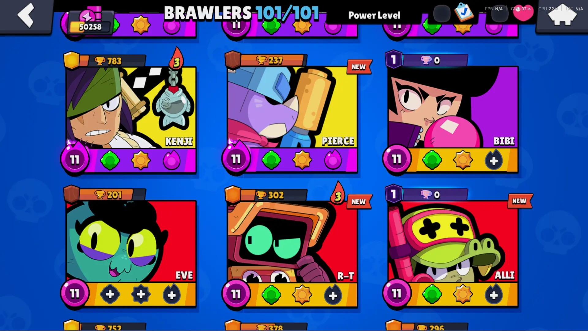 Bs 50k 🔥 PLAYER ID CHANGEABLE . Prestige 2 ✅ COLT PRO PASS . 39 max ✅ 290 skins . 5 brawl pass plus ✅ 69 hypercharges