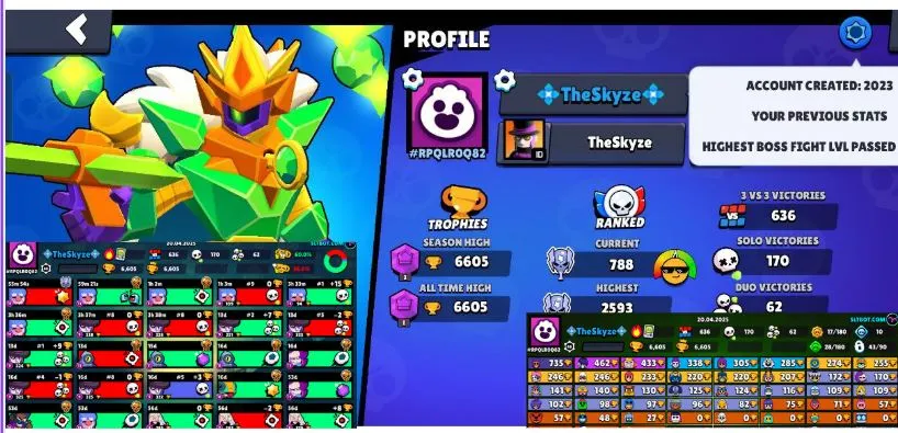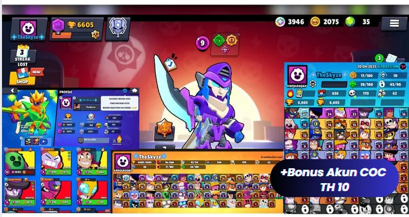 ⭐Coll BS + COC TH10 Account – HC Rico ft Gale Max Lv Full Skill + 3 Legendary + 43 Brawlers + Many Skins + 6605 Trophies|