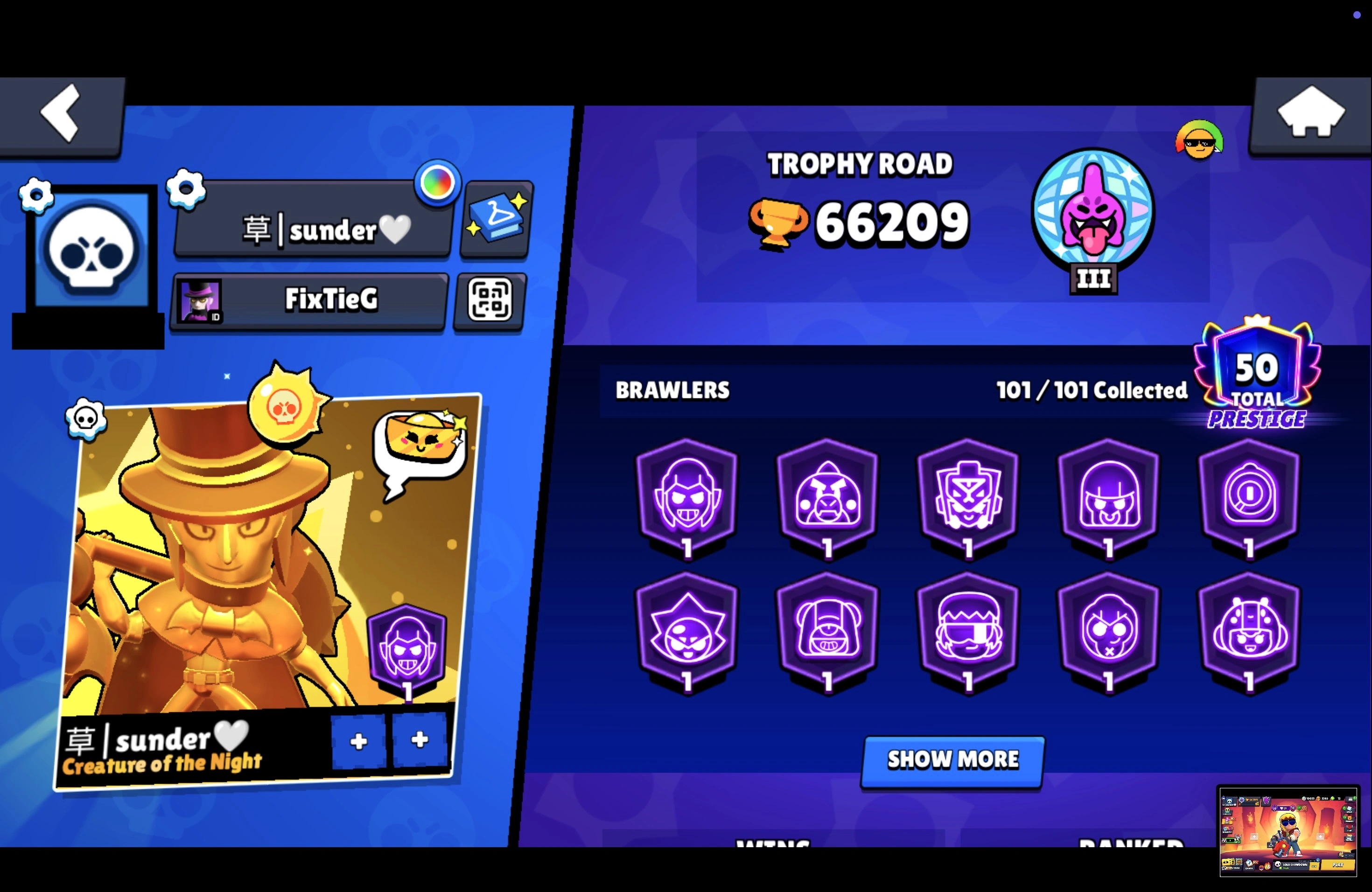 LEGENDARY 2025 ⭐ 342 SKINS ⭐ 66.200 TROPHY ⭐ 101 BRAWLERS ⭐ 39 HYPERCHARGED ⭐ 47 MAXED BRAWLERS ⭐ 50 PRESTIGE ⭐ 27 BUFFIES ⭐ CHAINSAW BUSTER ⭐ MECHA MORTIS ⭐ PHOENIX CROW ⭐ GUARD RICO ⭐ PORCELAIN SURGE ⭐ LEGENDARY ⭐ 60K