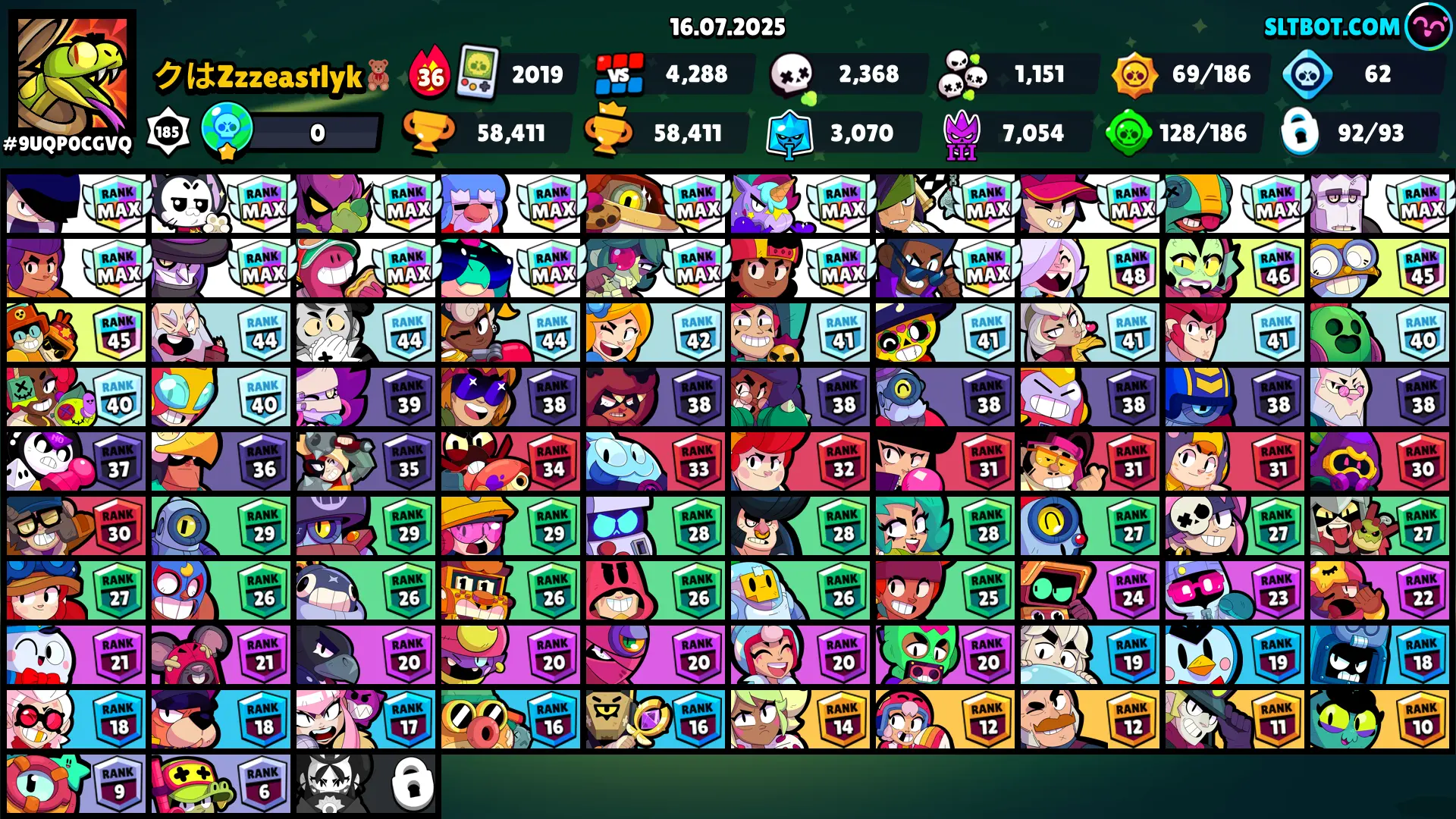 MERCHANT GALE ⭐ 10 TITELS ⭐ 199 SKINS ⭐ 58.400 TROPHY ⭐ 92 BRAWLERS ⭐ 24 MAX ⭐ 11 HYPERCHARGED ⭐ MECHA MORTIS ⭐ BORN BAD BUZZ ⭐ KITBOXER ⭐ KRAKEN SURGE ⭐ RED PITCHER FANG ⭐ SPIKE ⭐ LEGENDARY ⭐ LEON