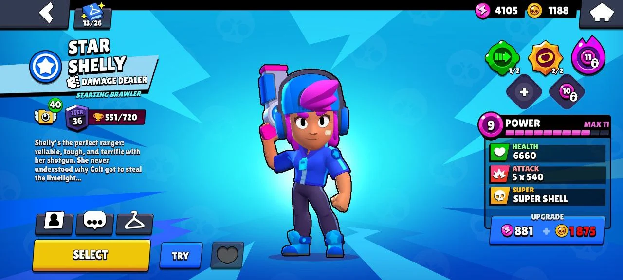 STAR SHELLY ✨ 30956 TROPHY ❤️ 70 BRAWLERS 💥 3 LEGENDARY ❤️🔥 8 HYPERCHARGED 💫 189 GEMS 🎊 104 OG SKINS 💯 INSTANT DELIVERY 🔥