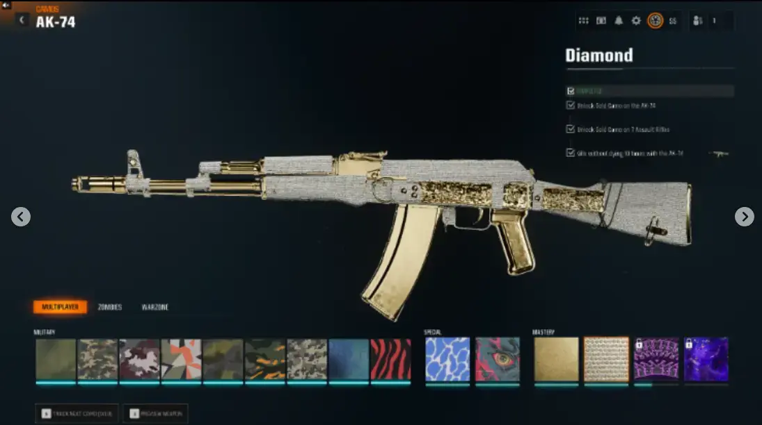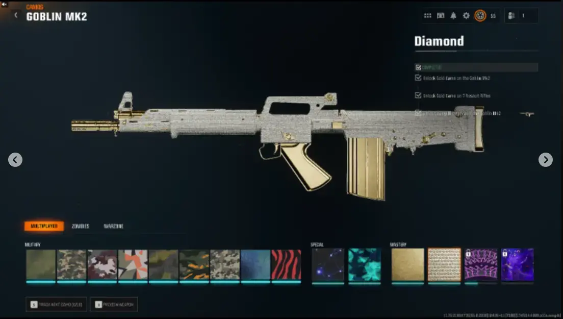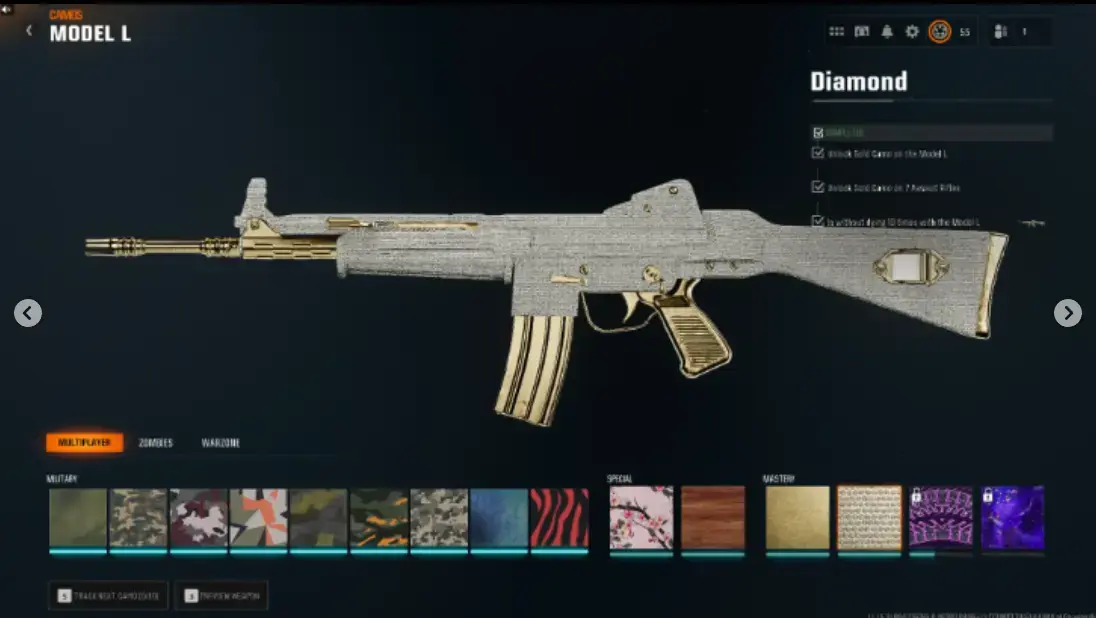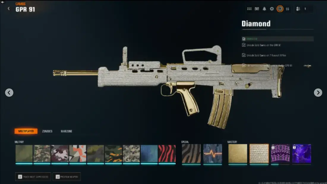 ăBO6ă13 Diamond ( AR / SMG ) 13 Gold Camos đ„Level 55â