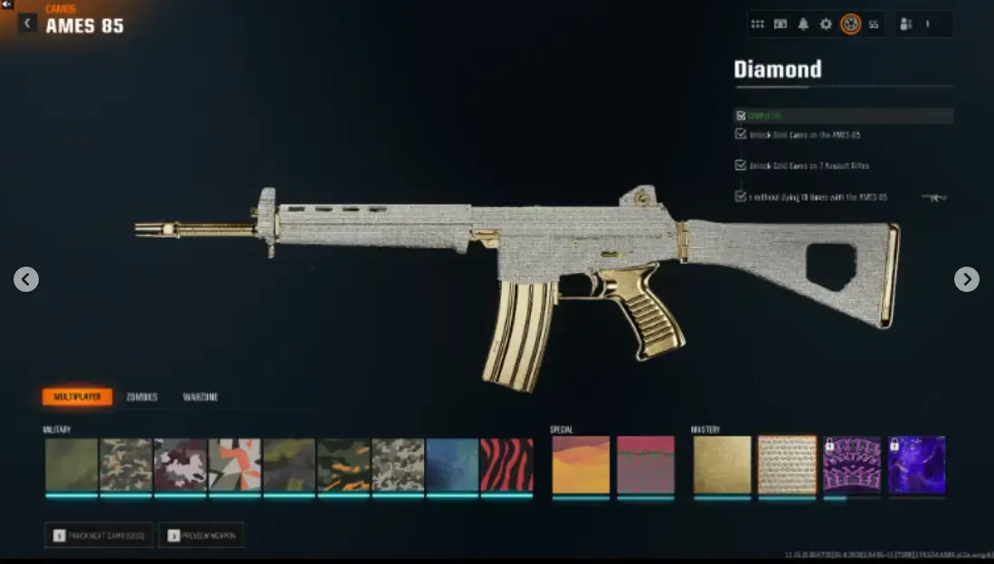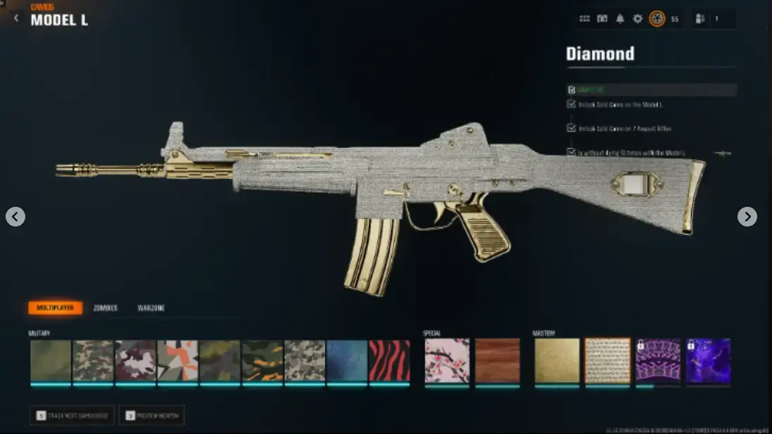 BO6】13 Diamond ( AR / SMG ) 13 Gold Camos 🔥Level 55✅HandGrinded (NOT BOTTED)✅ Linkable to Steam/PS/Bnet✔Game NOT purchased