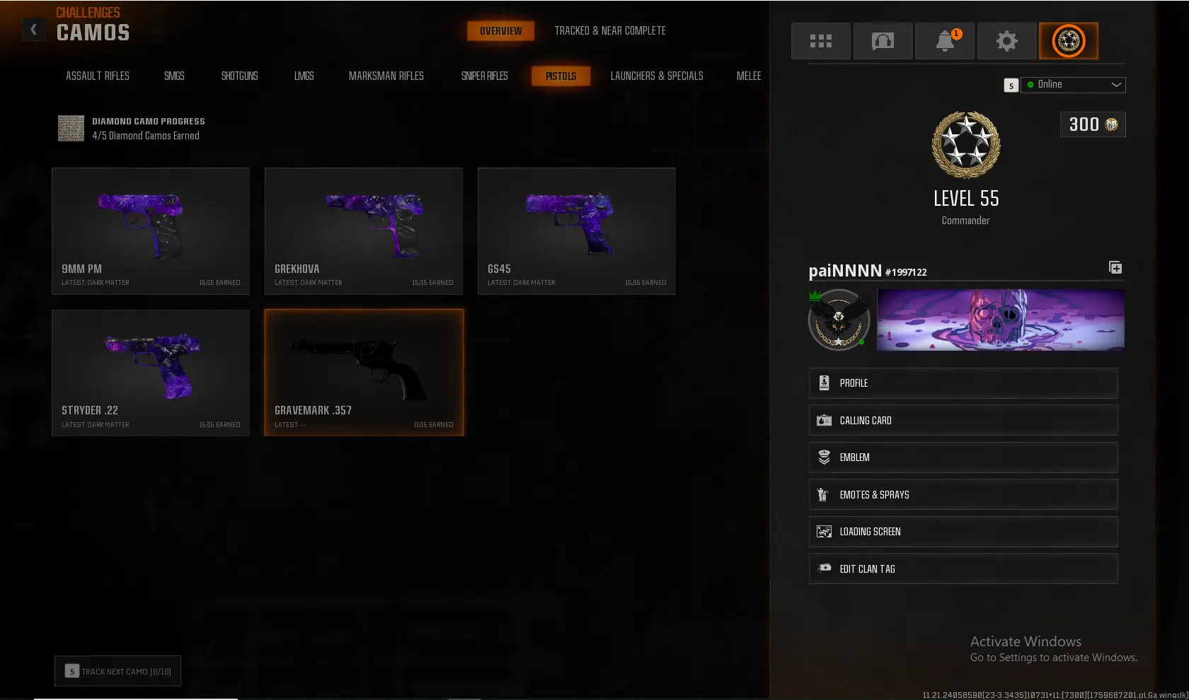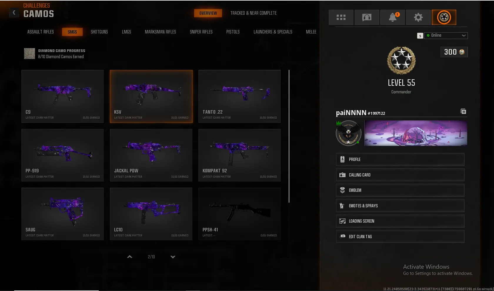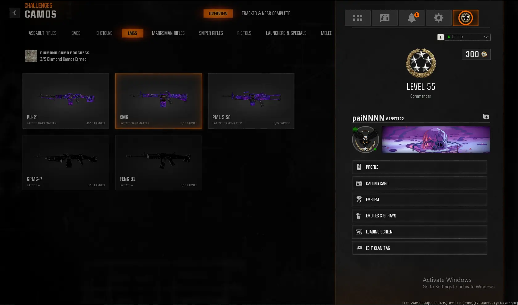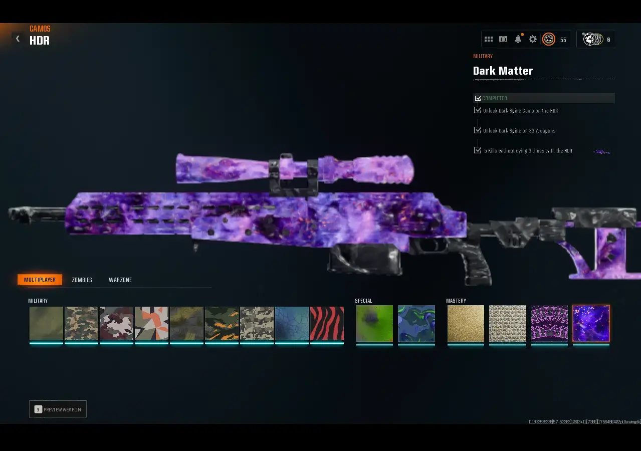 Dark matter | 🚀 C9 | FFAR1 | CR-56 AMAX | LC10 | 🪓 Pickaxe on New Guns | | 💥 Prestige 1 Lv.55 🆙 | 🏆 50 Wins | 18 Operators 👥 🎮 Steam / PSN / Xbox / Battle.net 🌐 | ✅ Ranked Ready