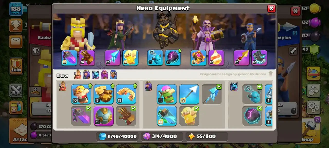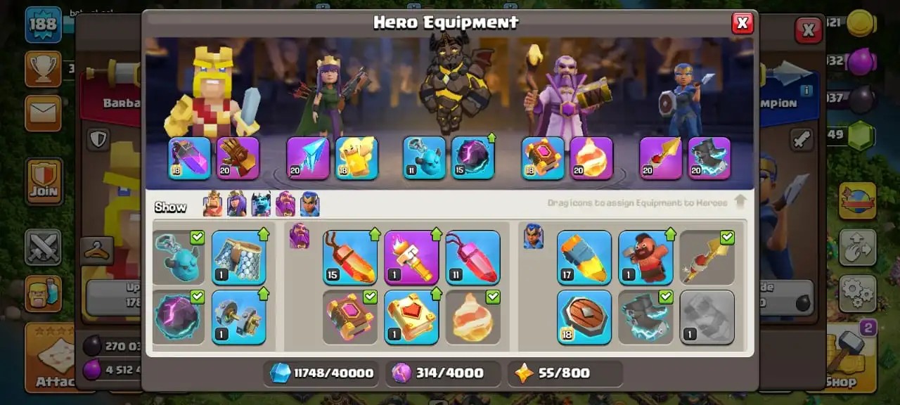 Best deal🔥TH 14 MAX🔥max heroes🔥max walls☠️7 epic equipment⚒️6 builder’s✅free name change