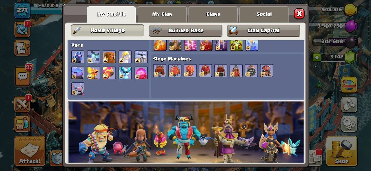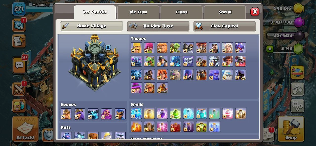 💎 (CHEAPEST) 1000% MAXED TH 17 💪 FULLY SUPERCHARGED 🚀 PURELY MAXED PROFILE ✨️ 7 EPIC EQUIPMENTS MAXED 🔥 EXCLUSIVE SKINS & SCENERIES 👑 271 XP 🎯 ALL PETS & SIEGES MAXED ☄️ FULL MAX BUILDER BASE 🏅 4.1K WAR STARS 🌟 RENAME AVAILABLE ✅️ INSTANT DELIVERY 🚚