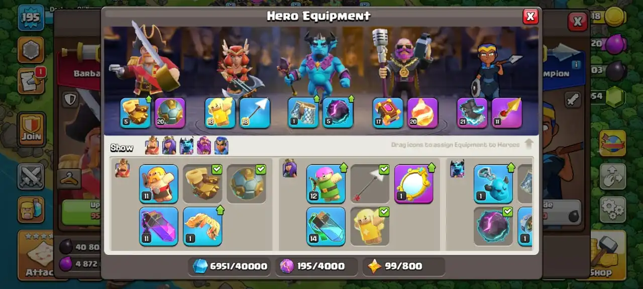 Cheapest🔥TH 14 almost max🔥high heroes level 81/81/60/56/30☠️5 epic equipment⚒️6 builder’s✅cn on